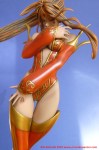Ho realizzato il modello in questione nel 2010, acquistandolo (non saprei dire quanti anni prima) da E-2046 (http://www.e2046.com). Come per tutti i soggetti appartenenti al mondo delle Jap Figure, ho lavorato quasi interamente ad aerografo utilizzandolo per la pelle ed il costume rosso (sfumature comprese). A pennello ho, invece, dipinto i capelli, il vortice ed i restanti dettagli (oro incluso). Con l’aeropenna ho usato gli smalti della Testor mentre a pennello gli acrilici Vallejo.