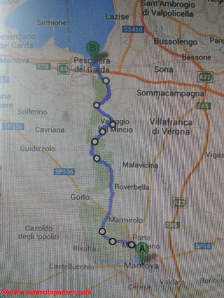 Domenica 25 maggio ho partecipato ad un nuovo giro in bicicletta proposto da Ciclobby, (http://www.ciclobby.it). Questa volta il percorso ha avuto inizio a Mantova con destinazione Peschiera del Garda percorrendo la pista ciclabile realizzata lungo il corso del fiume Mincio e toccante Veleggio sul Mincio. Considerando la bellezza delle città toccate nonché il fatto di essere la pista ciclabile inclusa nel Parco del Mincio, avevo grandi aspettative su questo percorso che attendevo di fare da lungo tempo. Il tour non si è, però, dimostrato all’altezza delle mie attese.