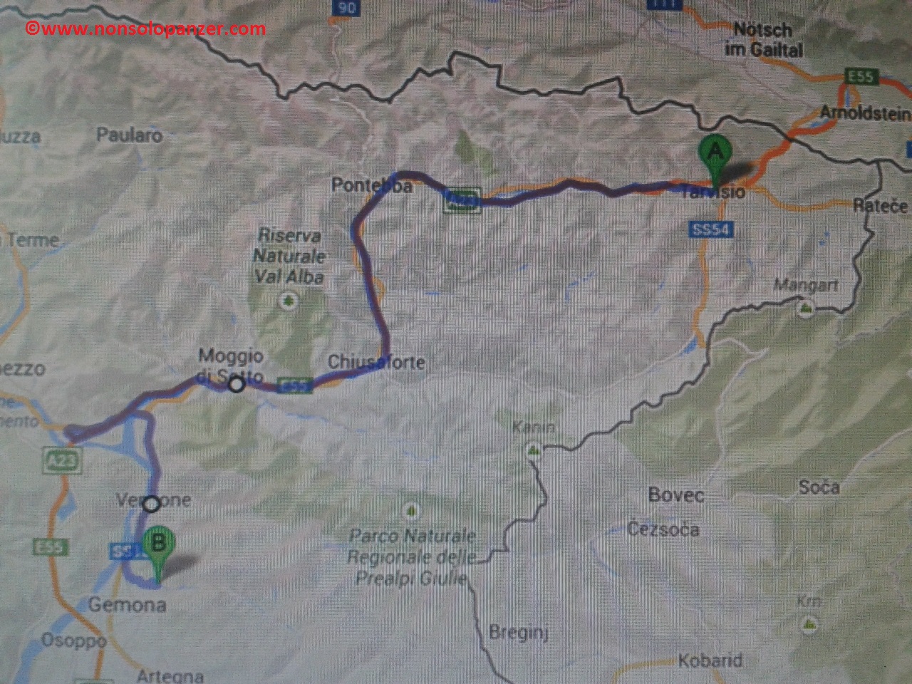 Sono arrivato ad Udine nel pomeriggio di venerdì 30 maggio condividendo il viaggio in treno con l’insostituibile Roberta che mi ha fatto anche da preziosa badante nel corso del tragitto. In realtà avremmo potuto arrivare ad Udine con la mia auto portando con noi le bici ma, in considerazione del ponte di quei giorni, ho preferito evitare ciò a causa del sicuro traffico in cui saremmo incappati durante il ritorno del lunedì. In ogni caso il viaggio in Freccia Bianca fino a Venezia-Mestre e poi con un regionale fino ad Udine è stato comodo e puntuale sia all’andata che al ritorno.