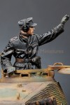 I due figurini in oggetto richiamano inevitabilmente alla memoria il look di molti carristi tedeschi negli ultimi mesi di guerra. Mesi durante i quali una sempre più esigua Panzerwaffe ingaggiò disperati combattimenti nel tentativo di frenare l’avanzata alleata verso e poi all’interno della Germania. La postura, estremamente dinamica ed evocativa, rende questi due figurini ideali per completare nel migliore dei modi un bel modello di Tiger II o Panther ambientato nel 1945.