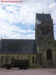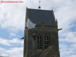 Sainte-Mère-Église gode di una notevole fama dovuta tanto al fatto di essere stato il primo paese normanno ad essere liberato dagli Alleati quanto per le numerose scene in esso ambientate del colossal “Il Giorno più Lungo”. In quella che oggi è un po’ considerabile come la “Gardaland del D-Day” per le fittizie attrattive che vi si trovano (prima fra tutte il manichino di paracadutista appeso al campanile) ho avuto il primo assaggio di folla presente nei giorni dell’anniversario. All’esterno del paese, infatti, erano allestiti enormi parcheggi, fra cui uno interamente destinato ai camper e colmo all’inverosimile. La ressa non mi ha comunque impedito di godere della visita alla cittadina pullulante, fra l’altro, di militari della 101ª lì presenti per le commemorazioni.