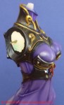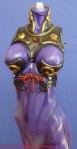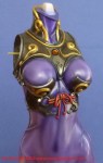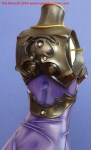 Procedendo nello stesso modo descritto nei commenti precedenti, ho completato anche la pittura dei vari elementi che compongo il busto del personaggio con una particolare attenzione per il cordoncino rosso sotto il seno che riprende lo stesso pendente dall’elsa della katana. Per quanto ho potuto capire da una breve ricerca su Internet, non si tratta di un semplice elemento decorativo, bensì di una caratteristica che definiva il rango e l’importanza del samurai che lo indossava. Come in precedenza, infine, ho incastonato, ove necessario, le perline in vetro aggiungendone una più grossa di colore rossiccio sulla corazza frontale all’altezza del petto.