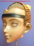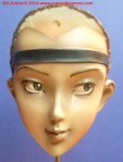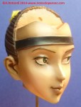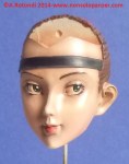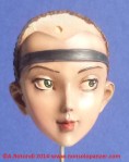 Prendendo ispirazione da varie figure tratte dai disegni di Yamashita Shunya ho dipinto gli occhi riproducendo per prima cosa il rosato interno delle palpebre inferiori. Si tratta di un piccolo dettaglio che, a mio parere, dona grande naturalezza allo sguardo del soggetto. Successivamente ho realizzato le ciglia inferiori e superiori cercando di dare alle stesse densità e tridimensionalità ma senza per questo dipingere interamente di nero le palpebre. Quest’ultimo è, a mio avviso, un errore che viene spesso commesso nella realizzazione di questo tipo di figure. In seguito ho dipinto la sclera (bianco dell’occhio). Anche in questo caso, allo scopo di dare massima naturalezza allo sguardo, non ho usato un colore bianco puro bensì ho mischiato un bianco pallido ad un rosa chiaro aumentando la percentuale di quest’ultimo nella parti confinanti con le palpebre ed l’orbita oculare. Credo in questo modo, di aver donato agli occhi del personaggio una grande naturalezza e tridimensionalità.