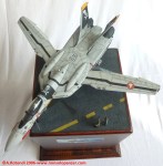 Le kit du VF-0S ait été le premier que j’ai réalisé. Il s’agit de l’intercepteur transformable piloté par Roy Focker en « Macross Zero », le prequel du 2002 à la série originelle narrant la guerre mondiale déclenchée pour la possession de l’épave d’un titanesque vaisseau extraterrestre tombé sur la Terre (la future SDF-1). La maquette Hasegawa a la bonne qualité des ses kits dédiés aux sujets historiques. L’assemblage est facile à l’exception de quelque passage qui nécessite d’un peu plus d’attention. Les seules améliorations apportées furent relatives au carrelle d’atterrissage frontal tourné sur la gauche et au mouvement des gouvernails de direction. Tout ca pour donner l’idée du déplacement de l’avion sur la piste d’atterrissage.