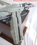 Questo mio VF-0S è da considerare in parallelo con l’Sv-51 da me realizzato alcuni anni dopo. Essendo i due caccia avversari, li ho rappresentati in modo che fossero agli antipodi uno dell’altro. A tale scopo ha giovato non solo la colorazione (uno bianco e l’altro nero) ma anche la postura in quanto quello in oggetto è in movimento per decollare ed il secondo, al contrario, è parcheggiato sulla pista in attesa degli eventi.
