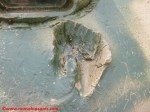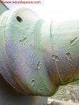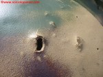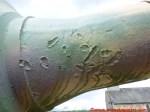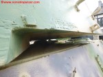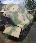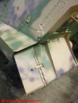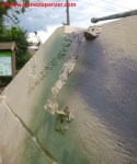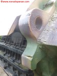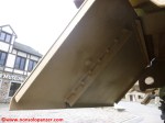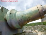 Il Tiger II “213 fu sottoposto a vari restauri che ne condizionano ancora oggi l’aspetto. Secondo quanto dichiarato nel sito del “December 44 Museum” (http://www.december44.com/en/tiger-213.htm), a quanto restava del cannone originario da 8.8 cm. fu saldata la sezione finale di un cannone da 7.5 cm. prelevato da uno dei cinque Panther camuffati da Tank Destroyer M10 della Panzer-Brigade 150 di Otto Skorzeny (tutti andati perduti a Malmedy). Grazie ad una sapiente saldatura, questa sostituzione non è immediatamente percepibile all’osservatore ma ad un occhio attento non sfuggirà il freno di bocca non correttamente in asse ed il fatto che la canna del “213” appare troppo lunga rispetto a quanto dovrebbe essere. Non ho ragioni di mettere in dubbio quanto affermato dal museo ma resto molto scettico a proposito dell’aggiunta citata. Mi pare davvero improbabile che la differenza di calibro fra i due cannoni non si traduca in una tale diversità di diametro da rendere palese il punto di giuntura fra le due. Propenderei per il recupero da un altro Tiger II della parte di canna necessaria al restauro ma non ho trovato conferme su questa questione da altre fonti che non sia il museo stesso e, conseguentemente, non posso che limitarmi a mostrare alcune foto trovate nel mio archivio personale e scattate al momento della saldatura dei due tronconi.