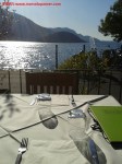 Queste salite hanno provocato il frazionamento del gruppo che, coincidendo con l’ora di pranzo, ha comportato una dispersione delle persone in diversi ristoranti a seconda dei gusti e delle preferenze (o, per meglio dire, a seconda dei luoghi in cui le salite hanno avuto la meglio sulle gambe dei partecipanti che hanno preferito fermarsi piuttosto che perdere i sensi lungo la via). Approfittando delle nostro buon allenamento e del mio sesto senso per i luoghi mangerecci, io e Gianpaolo ci siamo fermati in un ristorante a pochi passi dall’imbarcadero del traghetto ove, oltre ad aver pranzato molto bene, abbiamo anche goduto appieno della bella giornata grazie ad una provvidenziale terrazza vista lago strategicamente posizionata sul versante soleggiato dell’isola.