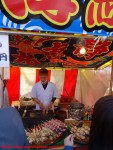 A dare ulteriore dimostrazione dell’importanza e della grande festa che rappresenta la fioritura dei ciliegi, vi erano anche numerosissimi chioschi in cui era possibile acquistare quello che oggi va di moda chiamare “Street Food”. Ovviamente trattandosi di una declinazione locale, in vendita vi erano infinite pietanze della tradizione giapponese che mi sono divertito a fotografare e, ingolosito, ad assaggiare ogni volta possibile. Escludendo gli Okonomiyaki, non saprei dare un nome a tutta l’ampia offerta presente ma, sono sicuro, non sfuggiranno ai più attenti molte specialità spesso mostrate anche in anime e manga.