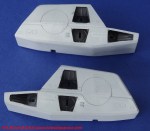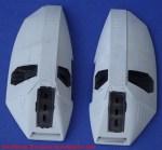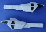 Sempre con cavetto di piombo, ho voluto riprodurre parte del sistema di alimentazione dei propulsori addizionali superiori. Purtroppo questo lavoro si è successivamente rivelato del tutto inutile. A causa del ridottissimo spazio disponibile una volta unite le due sezioni, ho dovuto togliere quasi tutte le parti aggiunte in quanto impedivano il corretto posizionamento dei reattori. Si tratta di un errore che avrei potuto evitare se avessi fatto una prova di assemblaggio e quanto avvenuto dimostra l’importanza di verificare sempre le conseguenze derivanti dall’aggiunta di parti non previste dal kit originario. Sono, invece, state essenziali le fotoincisioni del set Hasegawa che, comunque, non mi hanno evitato di applicare alcune sezioni di plastic card allo scopo cautelativo di nasconde i segni degli estrattori, particolarmente visibili sulle superfici interne.