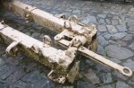 Outside the castle located in the historical center of the little town on Clervaux, there is a Pak-43/41, the powerful anti-tank gun of German army during the Second World War. Developed to counteract the mass of soviet T-34 tanks, it is the first version of this gun entered in action. Equipped with the same carriage of the 15cm artillery gun sFH-18 (schwere Feldhaubitze 18), the Pak-43/41 was handicapped by several defaults included the impossibility to rotate the gun at 360°. Although not placed directly on the ground, the gun is not in a good status. Several parts are missing and rusted because the gun is not protected by the weather.