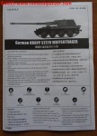 E’ proprio questo particolare modello di Waffentrager ad essere proposto dal kit Trumpeter oggetto di questo articolo. La società Trumpeter si fa spesso notare per proporre sul mercato soggetti inusuali come quello in questione ma, purtroppo, la qualità dei suoi kit non è al livello di quella garantita da altre ditte sue concorrenti. Mediamente i modelli Trumpeter si aggiudicano, nella mia personale valutazione, una sufficienza risicata, non fa eccezione la scatola di montaggio qui proposta. I dettagli sono mediamente grossolani, lo spessore della plastica un poco eccessivo e, molto probabilmente, mancano elementi che dovranno essere autocostruiti o recuperati da set di fotoincisioni. Ciononostante il kit ha il vantaggio di un prezzo contenuto, replica in scala un soggetto mai precedentemente proposto e fornisce una base ottimale ai modellisti più esperti che volessero cimentarsi in migliorie ed un modello di facile costruzione a chi si accontenta. Nel complesso si tratta di un apprezzabile compromesso che kit più complessi non possono offrire.