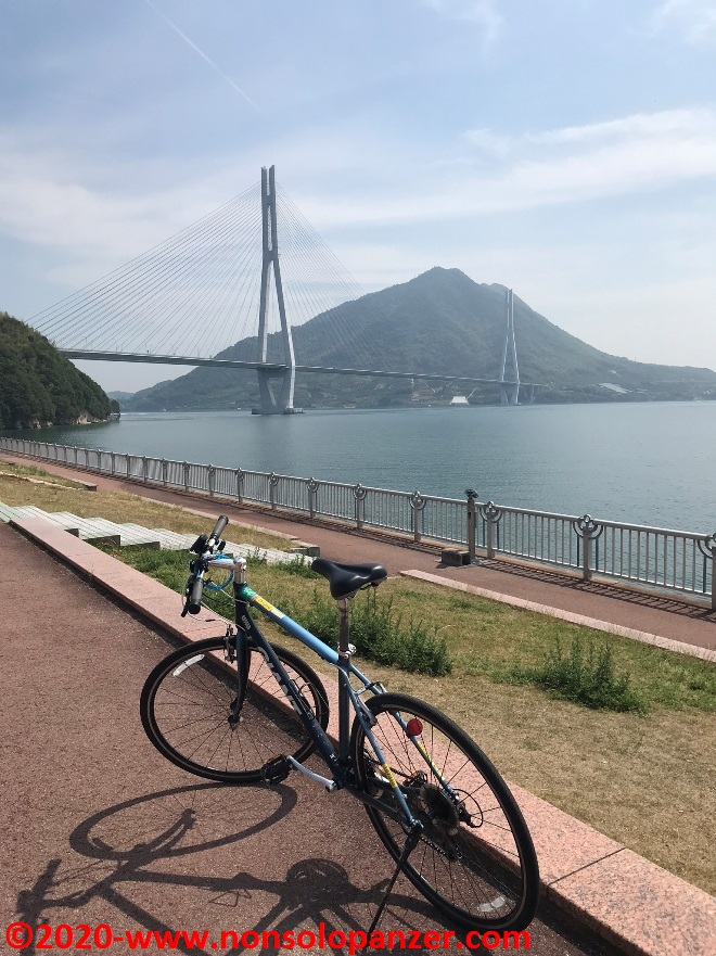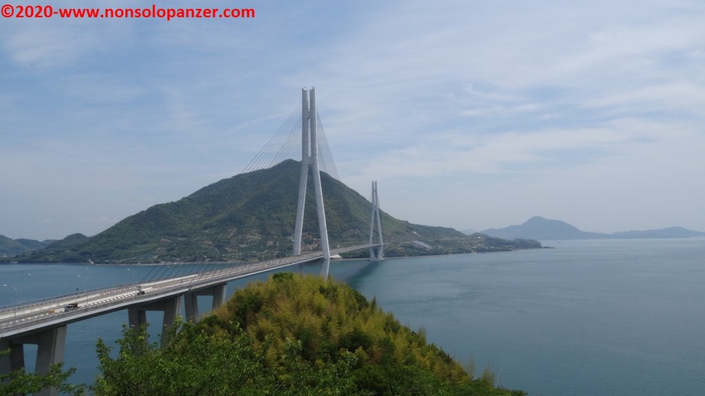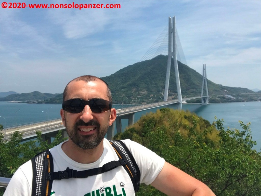 A conclusione di questa pausa relax, prima di iniziare a pedale, sono salito in cima ad un vicino punto panoramico dove è possibile godere della vista sul Tatara Bridge, ponte che unisce l’isola di Omishima con quella di Ikuchi.