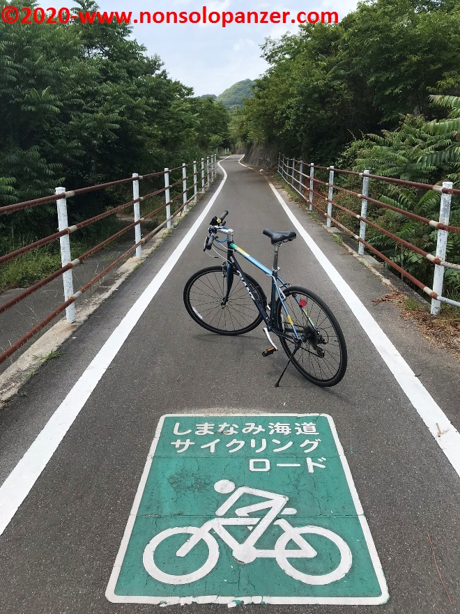 Da qui, seguendo le indicazioni ed i pannelli espressamente destinati ad orientare i ciclisti, ho imboccato la ciclabile che mi ha portato fino a Miyaura. Se ho ben compreso, la ciclabile è stata ricavata dal tracciato di una vecchia linea ferroviaria che serviva a trasportare le merci da un capo all’altro dell’isola. Ciò ha certamente favorito l’ottima resa della pista ciclabile che permette di attraversare con facilità i rilievi boscosi di Omishima.