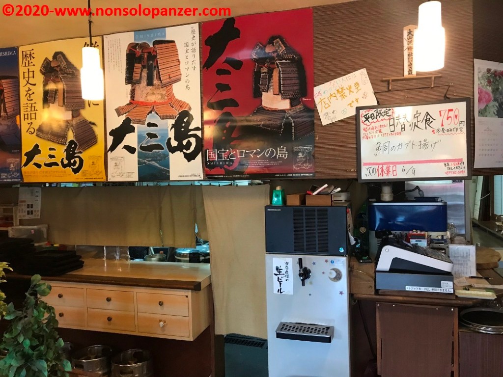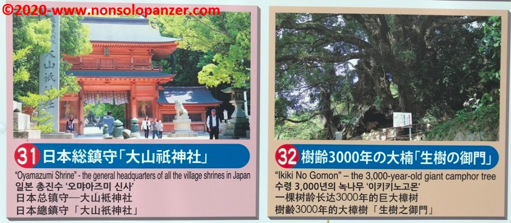 Arrivato all’altezza del tempio di Oyamazumi, non ho perso occasione di visitare questo antico luogo di culto che custodisce anche una secolare pianta di canfora. Lascio alle foto il compito di comunicare il fascino esotico del tempio ma non perdo occasione di segnalare che, a poca distanza, sorge un museo dedicato ai samurai che, dalle informazioni presenti, contiene la collezione più grande e preziosa di armi e armature di tutto il Giappone. Purtroppo non era possibile scattare fotografie ma lascio alla fantasia di tutti voi galoppare frenetica immaginandosi i tesori custoditi.