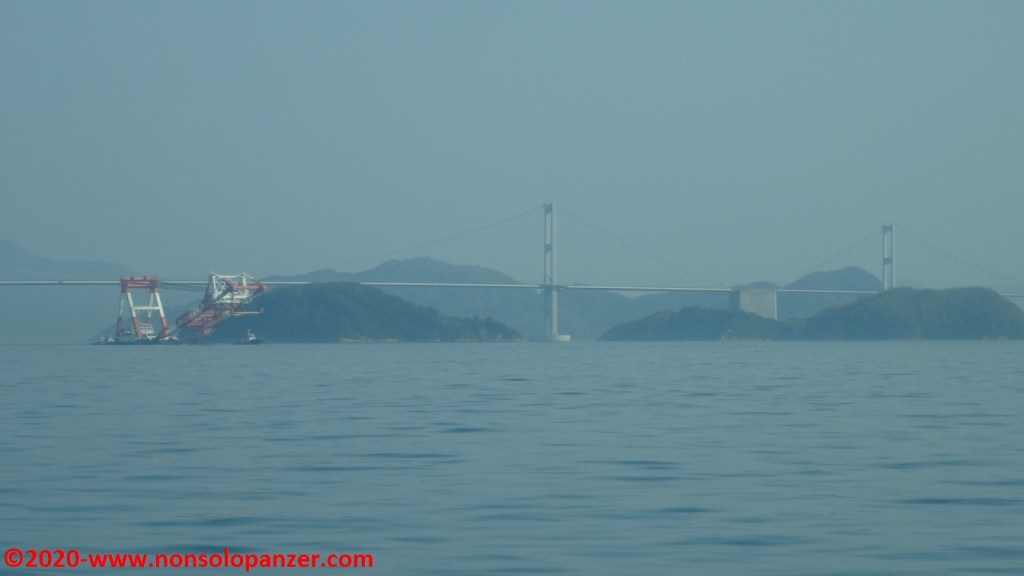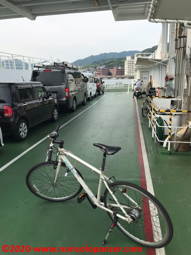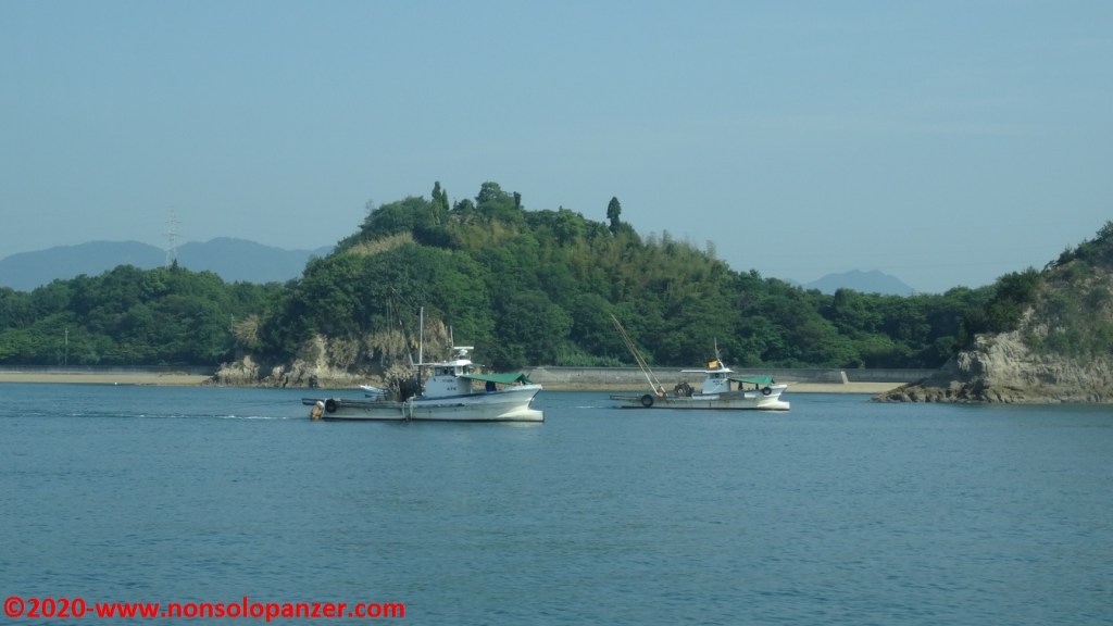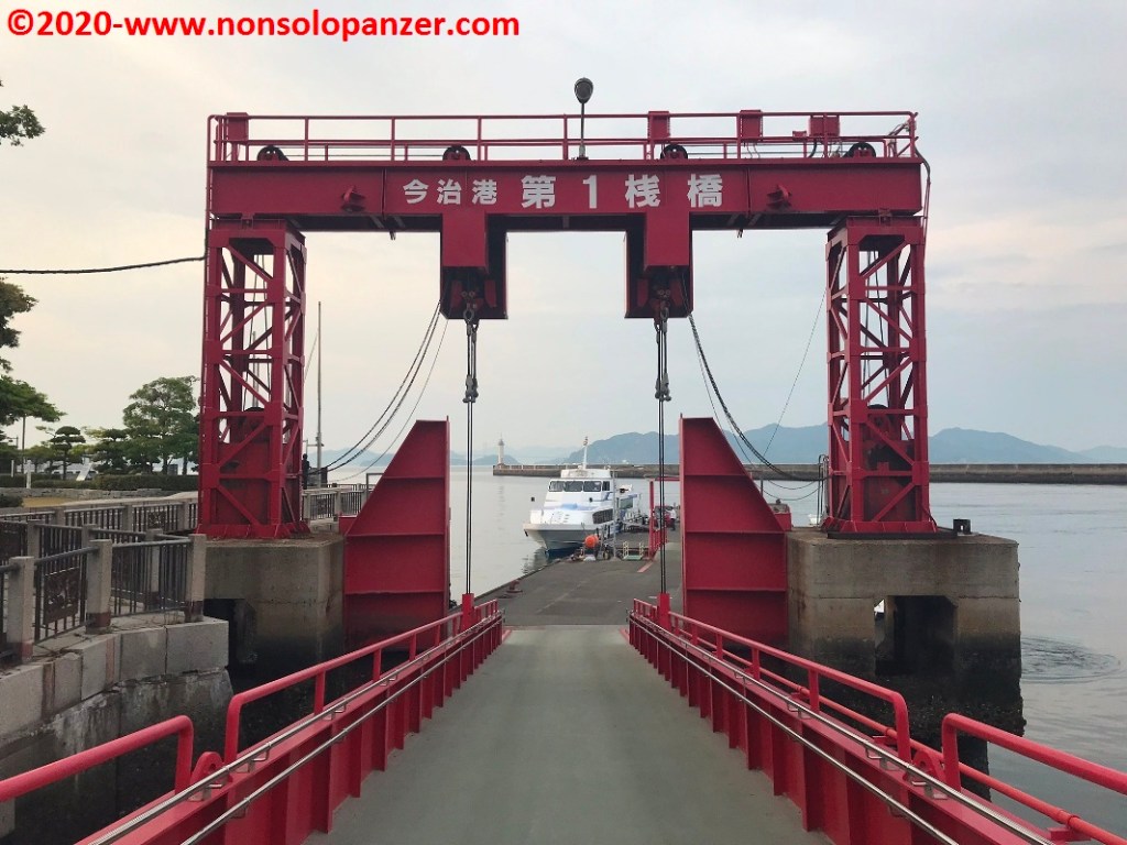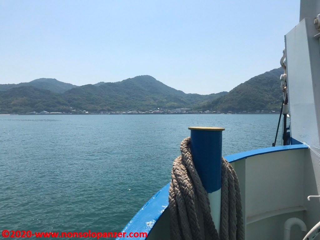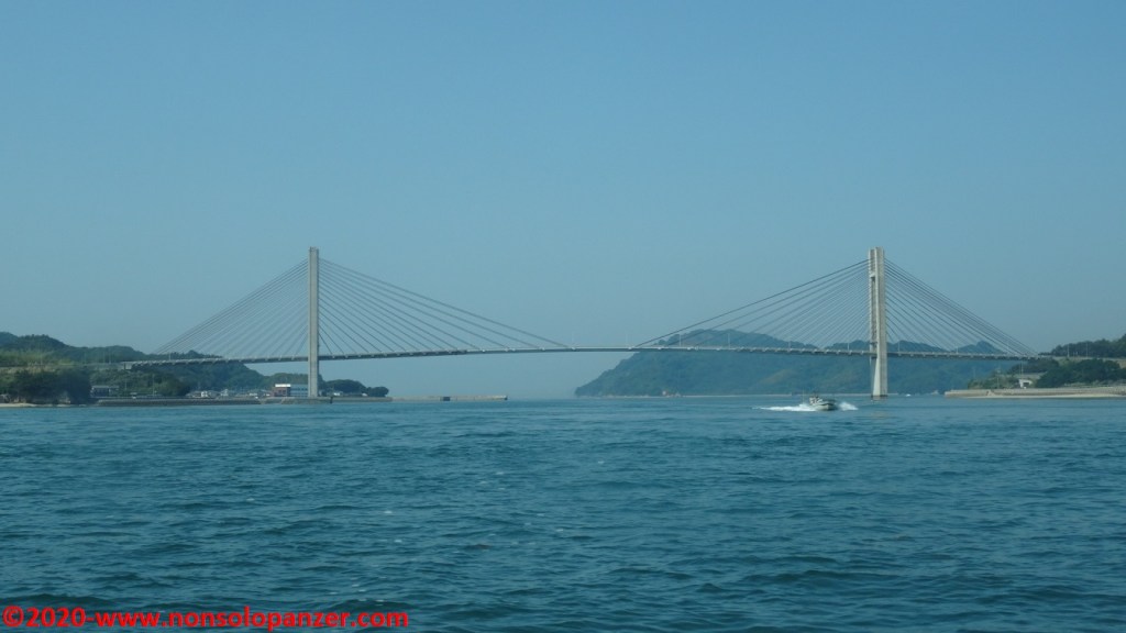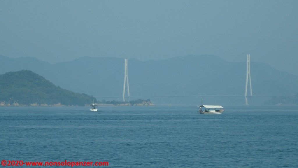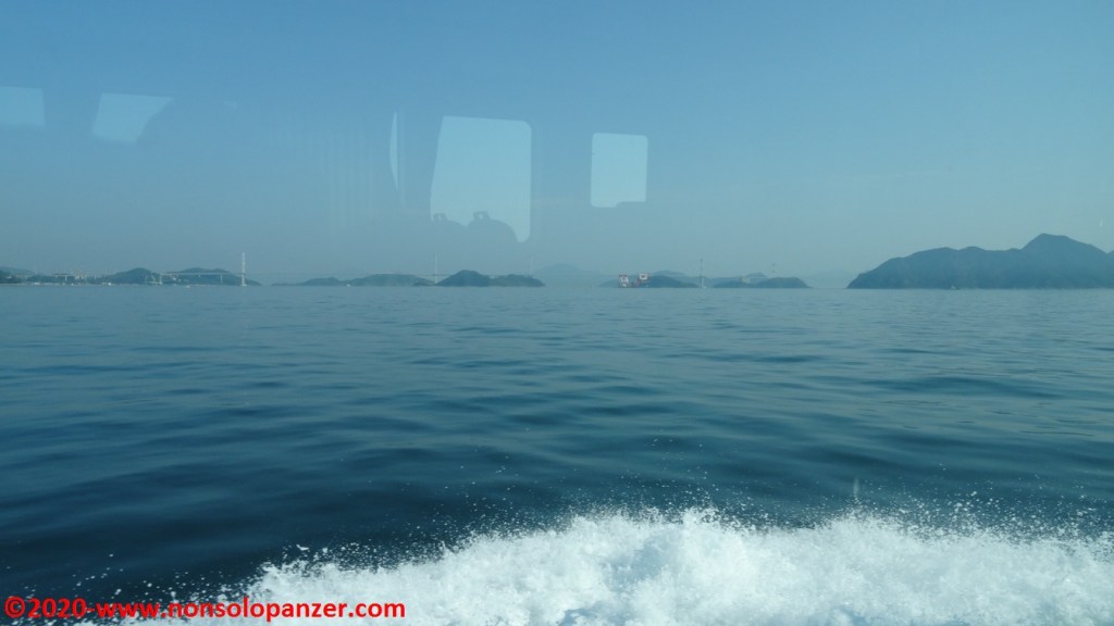 Per prima cosa, mi sono imbarcato la mattina presto sul battello che, partendo da Imabari, svolge servizio di collegamento fra le numerose isole dello Shimanami Kaido: destinazione la cittadina di Habu sull’isola di Innoshima. L’occasione è stata ovviamente propizia per offrirmi un nuovo panorama sull’arcipelago, diverso dal punto di vista avuto fino a quel momento pedalando sulle isole.
