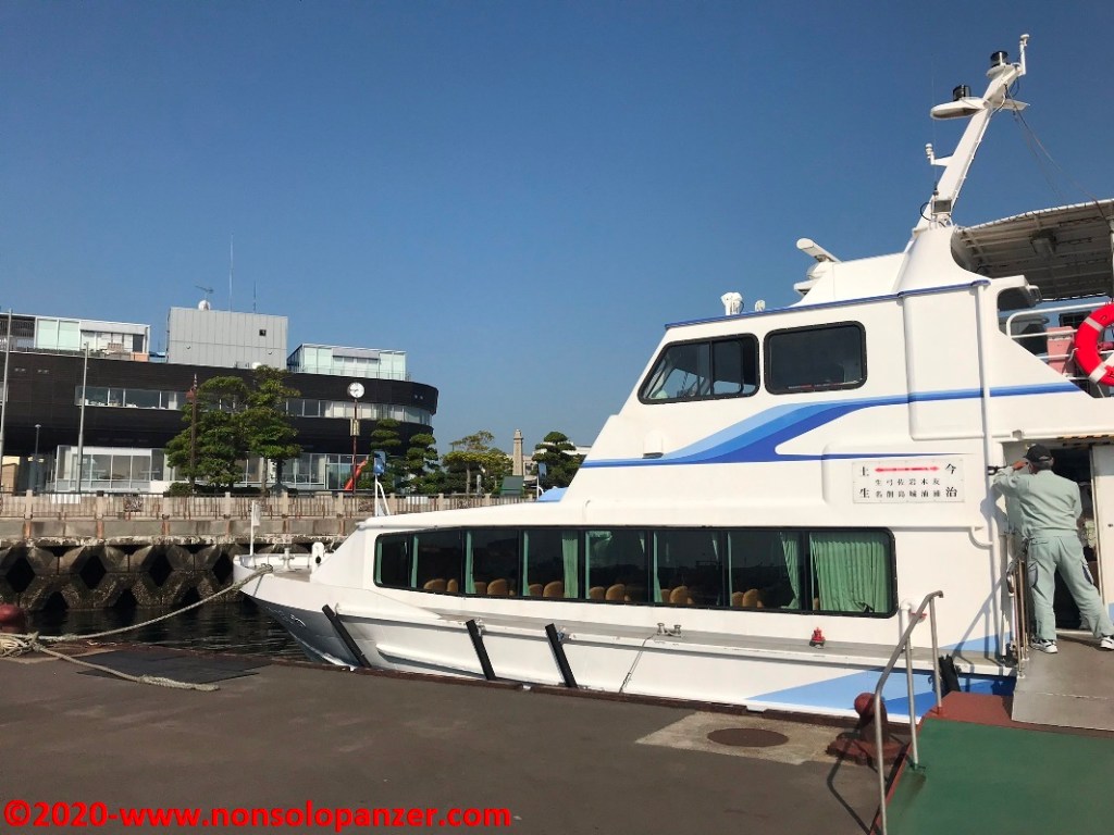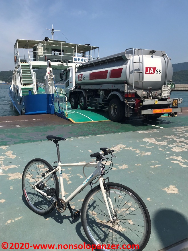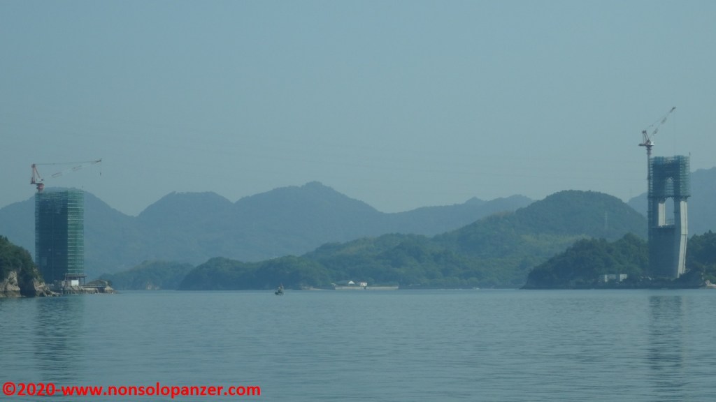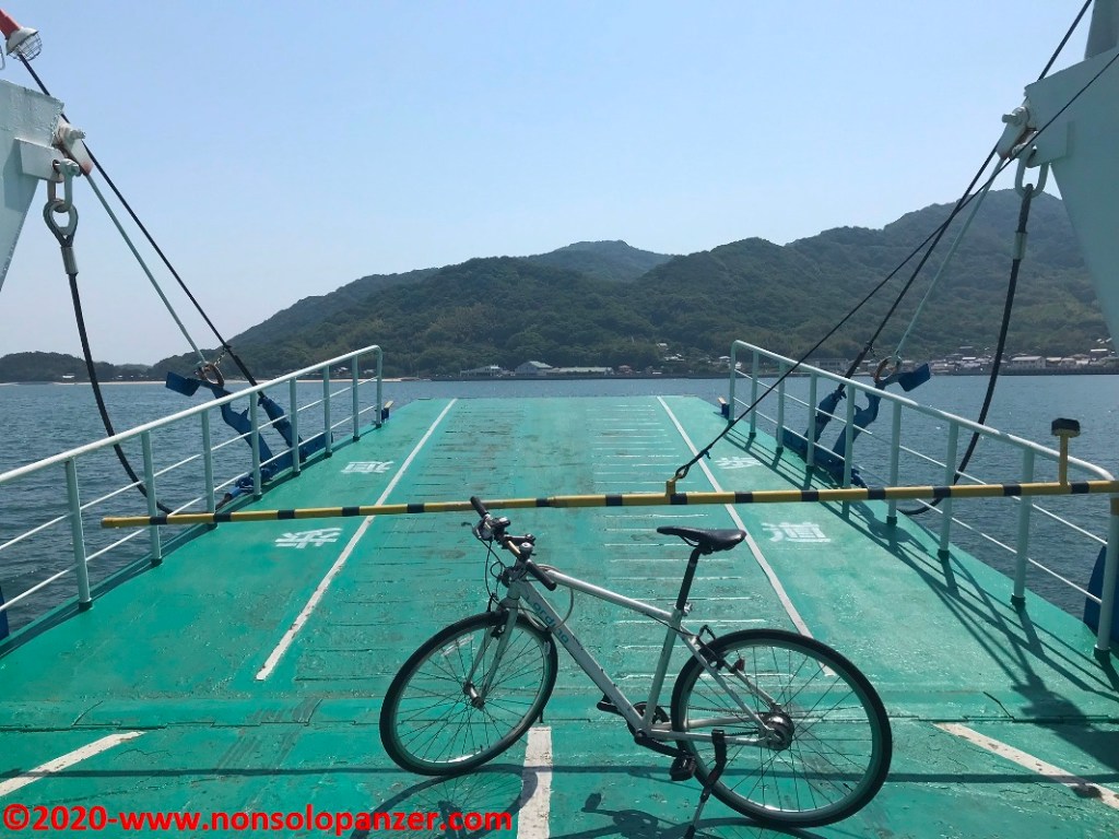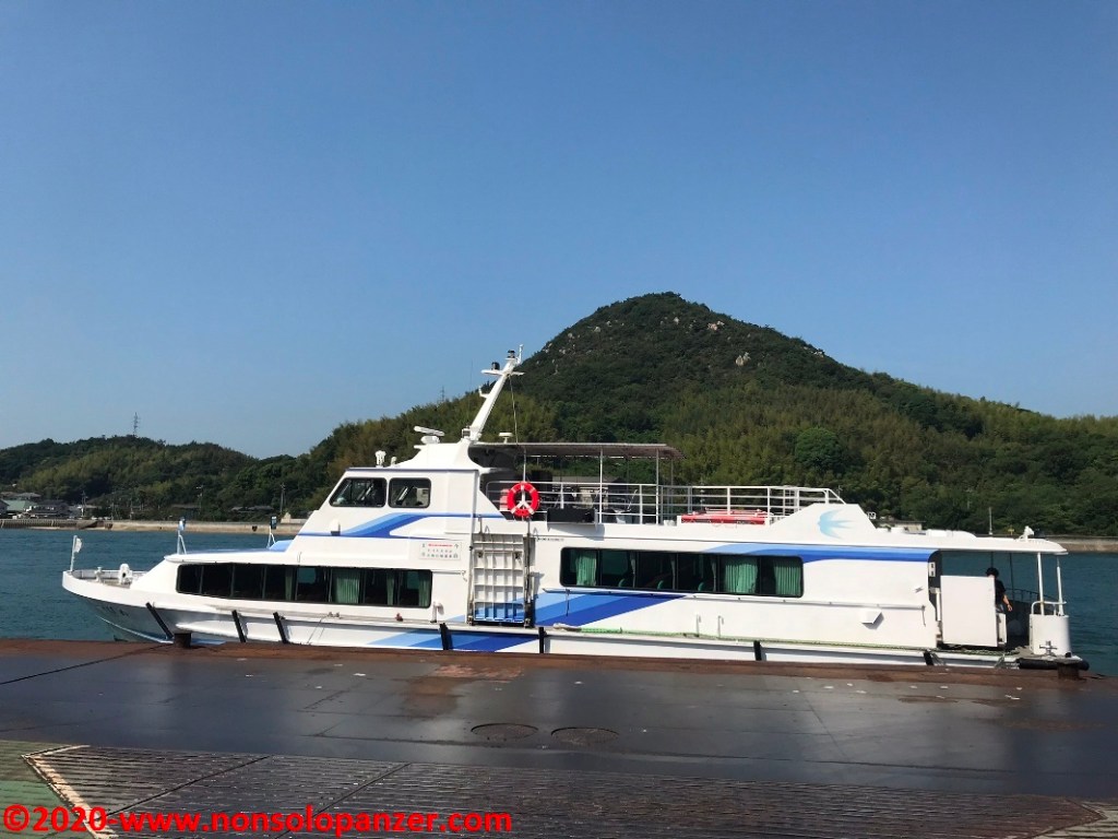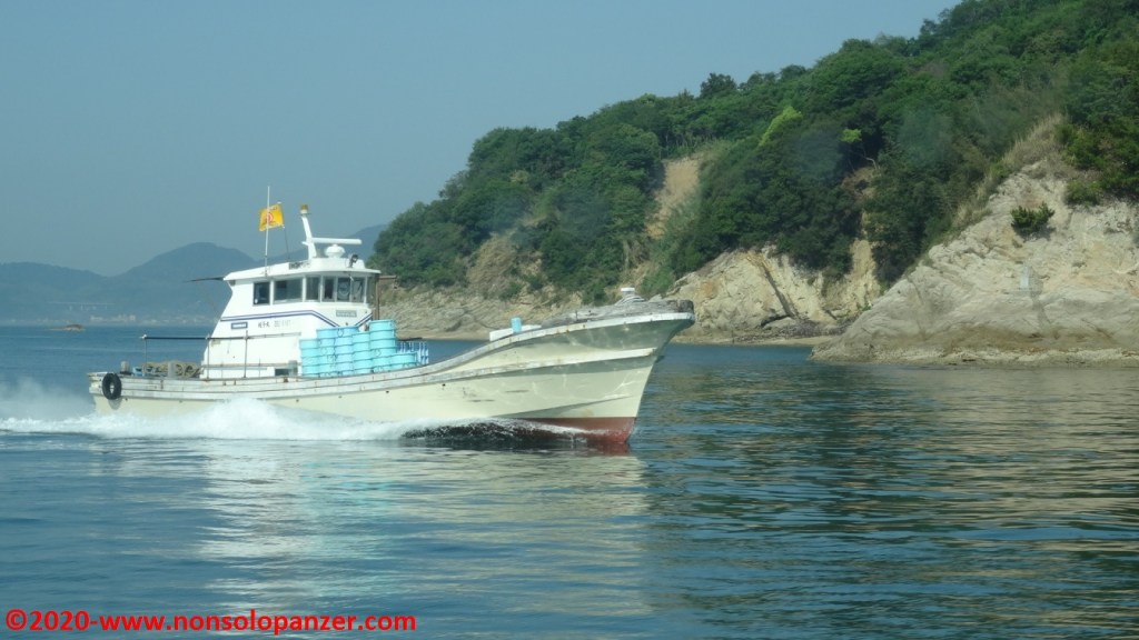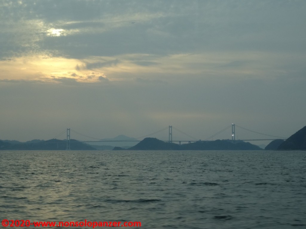 Per prima cosa, mi sono imbarcato la mattina presto sul battello che, partendo da Imabari, svolge servizio di collegamento fra le numerose isole dello Shimanami Kaido: destinazione la cittadina di Habu sull’isola di Innoshima. L’occasione è stata ovviamente propizia per offrirmi un nuovo panorama sull’arcipelago, diverso dal punto di vista avuto fino a quel momento pedalando sulle isole.