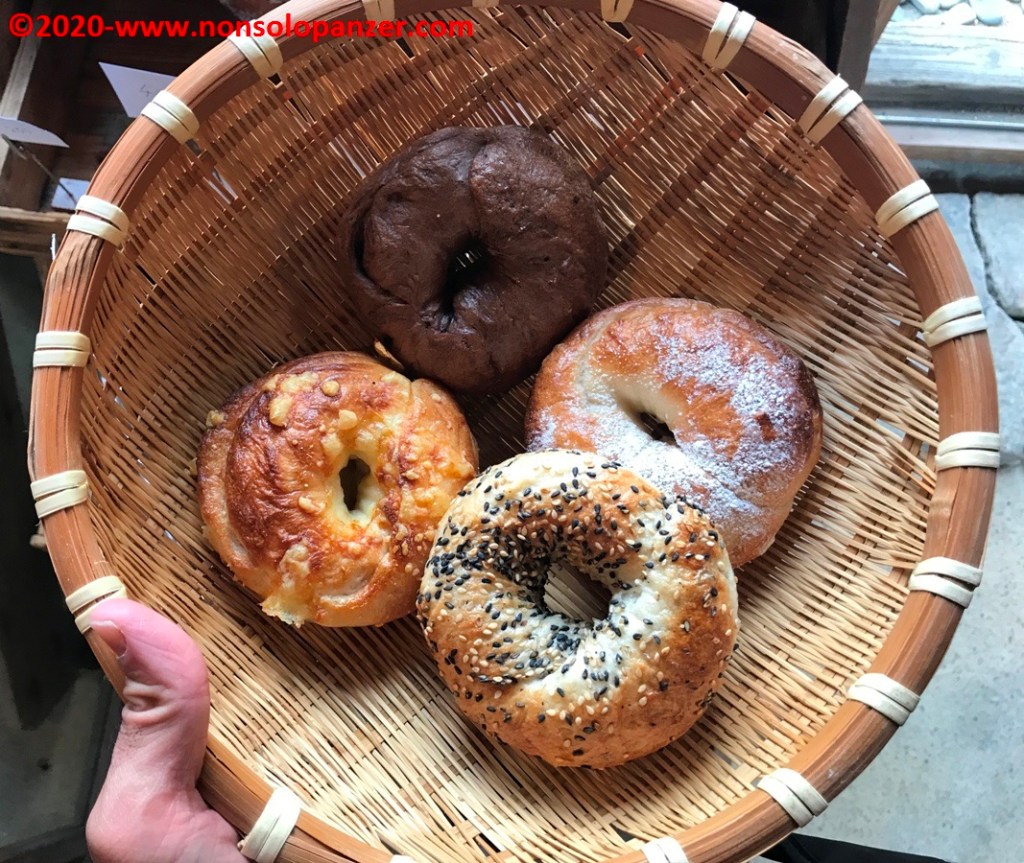 Sono così giunto nel piccolo paese di Kamiyuge che mi ha subito regalato l’emozione del “Kitchen 313 Kamiyuge“, una sorta di panetteria/forno artigianale che, nascosto in un dedalo di stradine, ho scoperto solo grazie al profumo che aleggiava nell’aria. Qui mi sono ritrovato in un contesto difficile da raccontare: la porta d’ingresso troppo bassa per me, il piccolo locale in legno occupato da tre anziane signore che sembravano appena uscite da un manga ed intente a razziare il negozio, i cestini di paglia intrecciata, il pane ed i bagel appena sfornati, il loro profumo e soprattutto i titolari, Maki e Shuhey, che mi hanno accolto come un amico di vecchia data nonostante la sorpresa di vedermi nel loro locale. Posto qualche foto scattata in quei momenti, consapevole che non possano esprimere le emozioni provate.