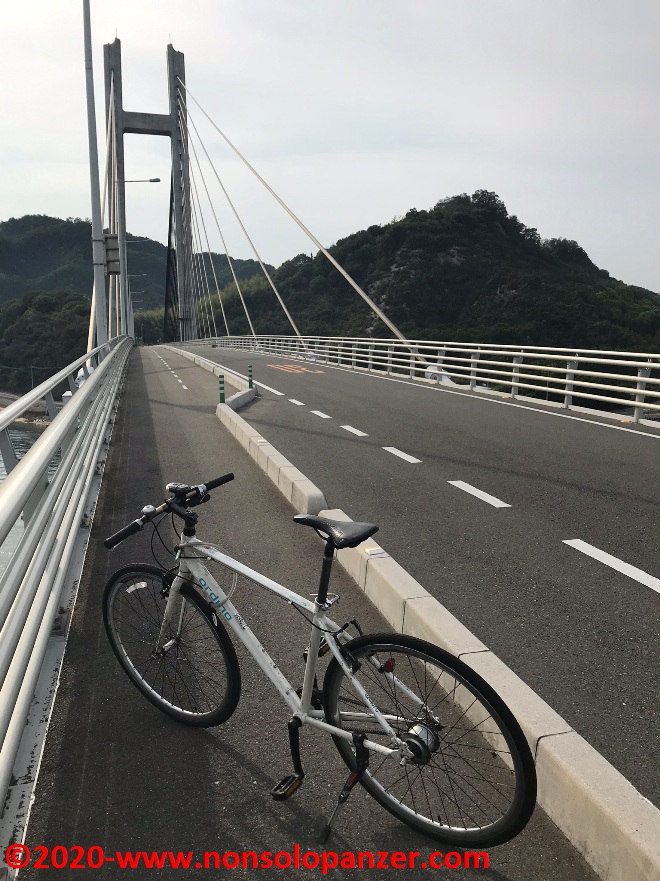 Ai più attenti lettori non sfuggirà che le tre citate isole non sono collegate alla terra ferma tramite gli ormai famosi ponti che creano il percorso ciclabile dello Shimani Kaido. Yuge, Sa e Ikina si trovano, infatti, a sud della grande isola di Innoshima e sono raggiungibili solo via mare. La loro particolarità è, però, di essere collegate da due ponti che facilitano il passaggio fra una e l’altra. E’ proprio questa serie di caratteristiche ad avermi incoraggiato a visitarle accettando il consiglio dei ragazzi dello Shimanami Guesthouse CYCLO NO IE in cui alloggiavo ad Imabari.