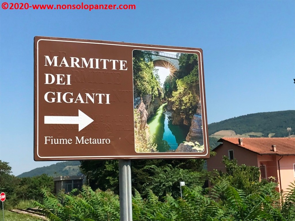 Uscendo da Fossombrone, mi sono imbattuto nel Metauro, fiume che sarebbe diventato compagno di viaggio per gran parte della giornata rimanente e artefice delle “Marmitte dei Giganti”, una stretta gola creata da acque limacciose in periodo estivo ma certamente tumultuose in altri periodi dell’anno.