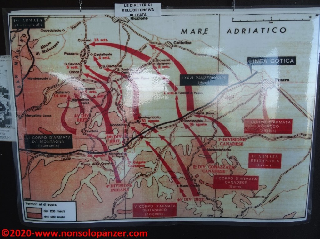 Come già mostrato in alcuni articoli scritti per questo blog, ho trascorso le vacanze estive del 2020 nelle Marche. La scoperta di questa regione, all’epoca a me del tutto sconosciuta, ha portato con se emozioni intense e sorprese inaspettate. Una di esse è stata la scoperta di un museo dedicato alla Linea dei Goti (più comunemente conosciuta come Linea Gotica), la linea di fortificazioni realizzata dai Tedeschi che, a difesa del nord Italia, attraversava l’Appenino da Massa-Carrara a Rimini. Dopo la caduta della Linea Gustav di cui faceva parte la ben nota Abazia di Montecassino, la Linea Gotica rappresentò la seconda barriera eretta dall’esercito tedesco per impedire agli Alleati di dilagare nella Pianura Padana e di determinare così il crollo del fronte meridionale del Reich.