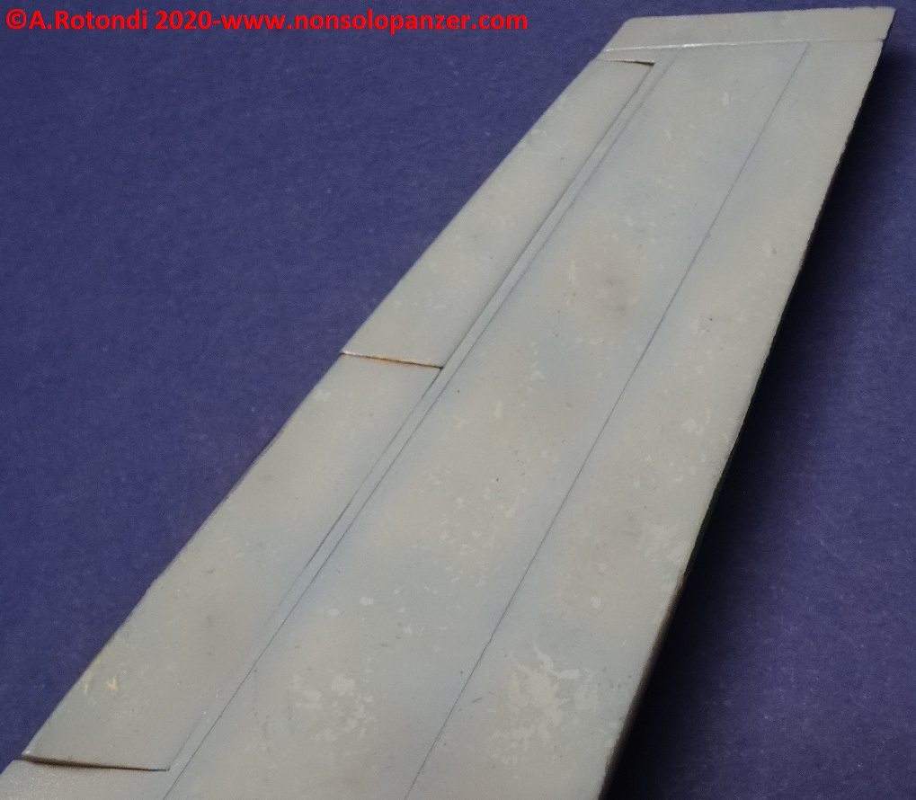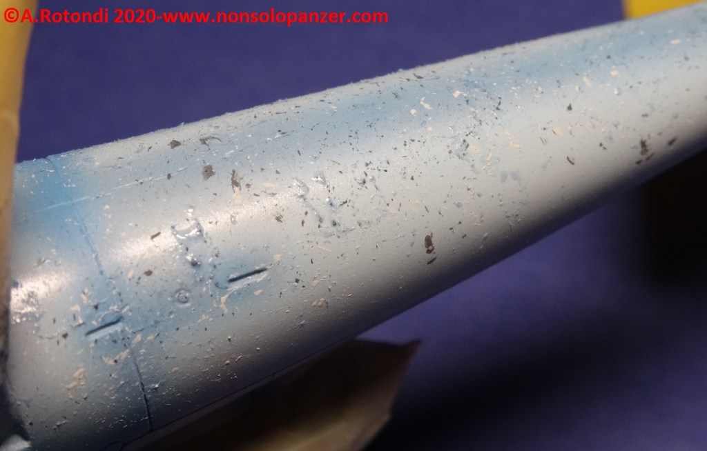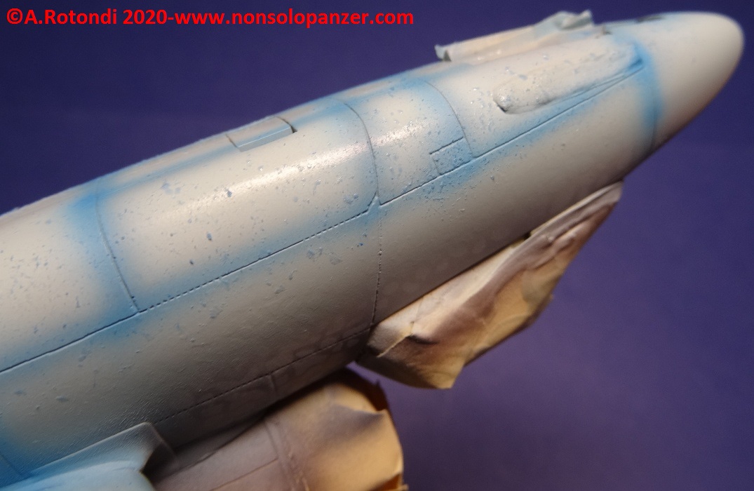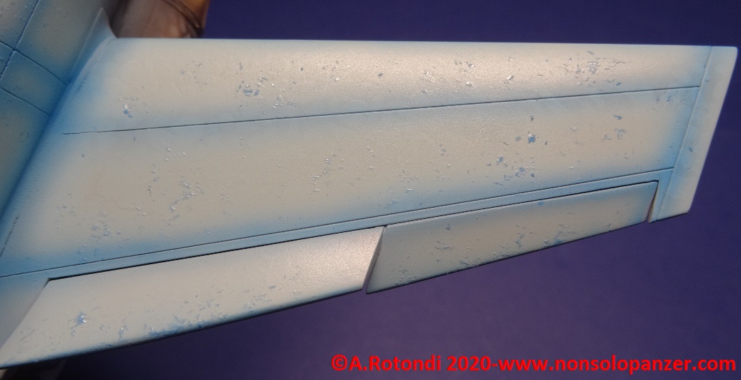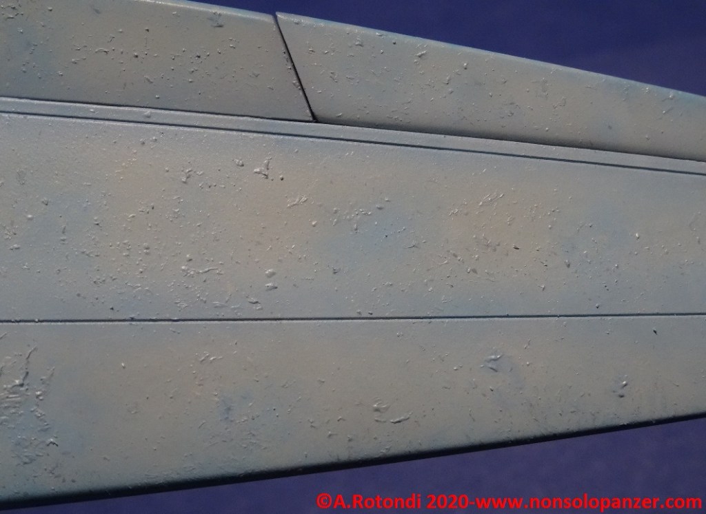 A questo punto, ho steso l’RLM76 puro in leggeri veli sovrapposti evitando accuratamente di ottenere una resa uniforme dello stesso.