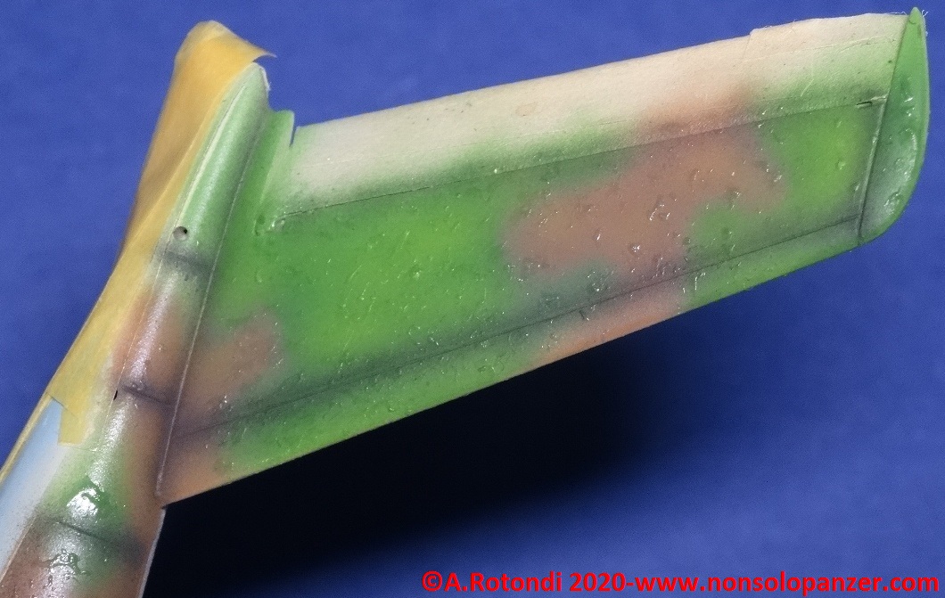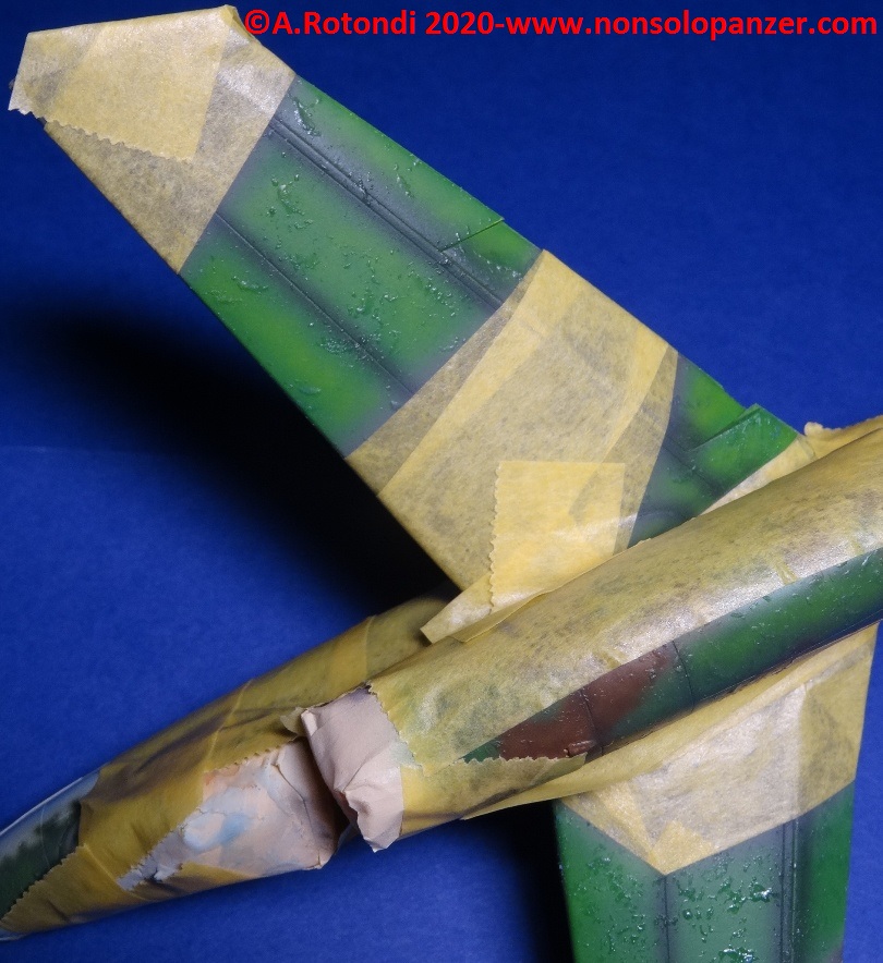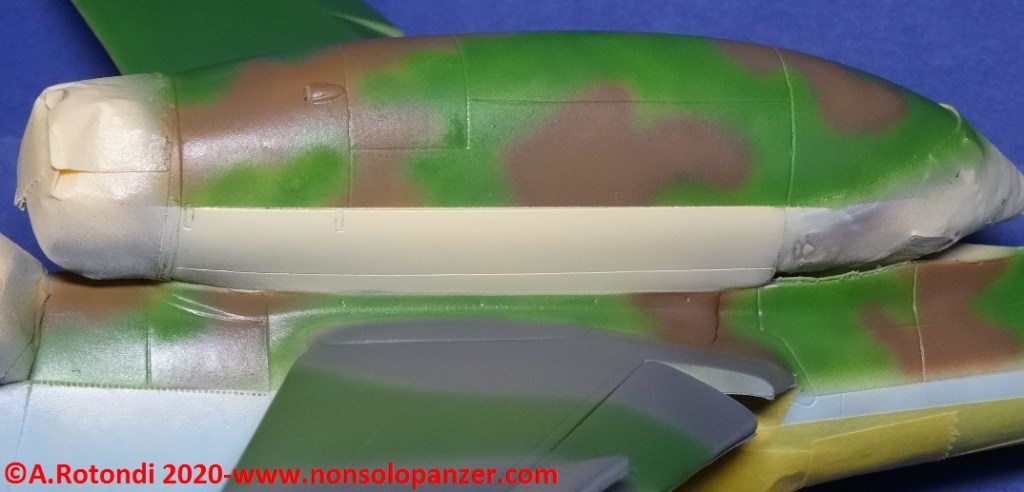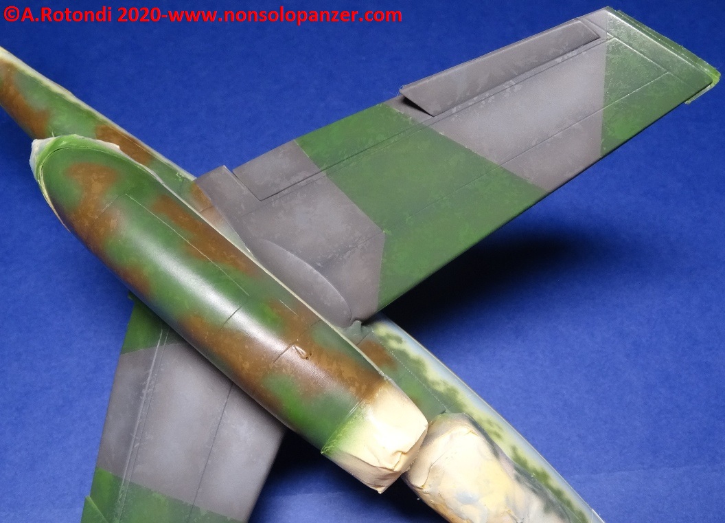 Ho, poi, steso l’RLM82 , il verde ed il marrone Luftwaffe di fine guerra, sulle ali.