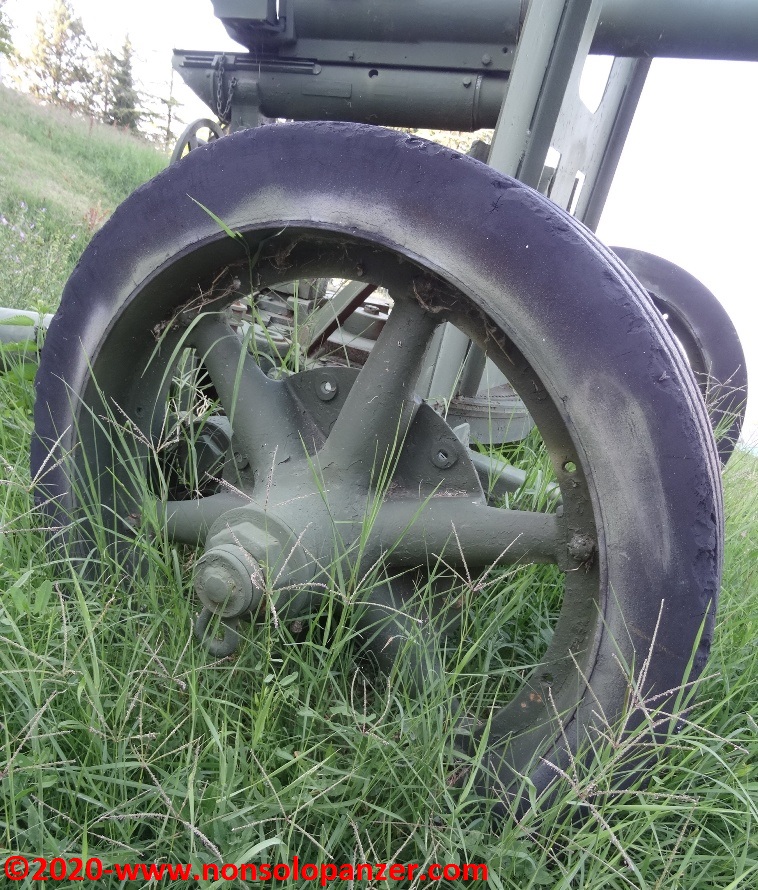 Nel raccontare i dettagli della mia visita al “Museo della Linea dei Goti” di Montegridolfo, non ho perso occasione di mostrare anche quanto presente nell’aerea esterna del museo. Mi sono concesso un’unica eccezione: l’affusto di un 7.5 cm Pak-40 usato come supporto di un ridicolo cannone italiano su cui non ho informazioni da condividere. Mi sono interrogato più volte sulla necessità o meno di trattare separatamente quello che, nella sostanza, è un riciclo post bellico di dubbio valore ma si tratta pur sempre di quanto resta di un 7.5 cm Pak-40 e, fosse anche solo per dovere didascalico, le foto sottostanti completano la collezione di proprietà del museo.