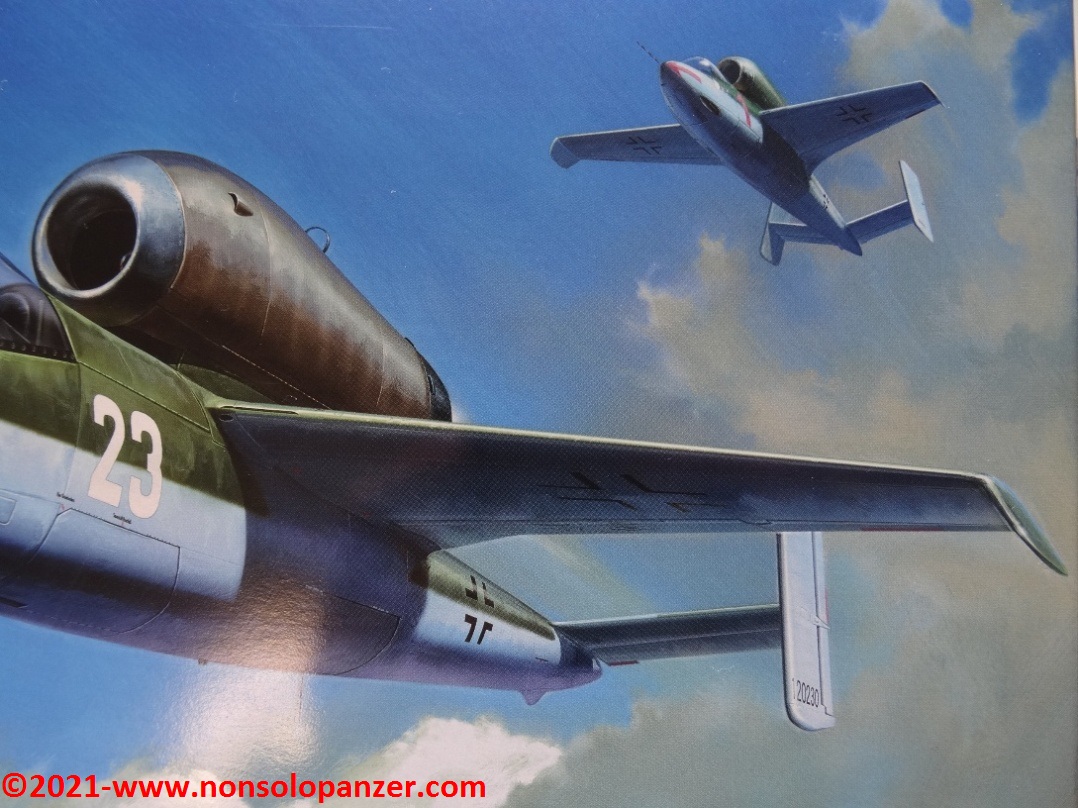 I rarely make models of aircraft of the Second World War, but there are Luftwaffe subjects that I like very much. A case in point is certainly the He-162 A ‘Spatz’ (often referred to “Salamander” or ‘Volksjager’), an aircraft with unique and revolutionary characteristics. The He-162 was not only equipped with jet propulsion and tricycle undercarriage like the Arado 234 ‘Blitz’ and the Me-262 ‘Schwalbe’, but it also had double tail and an ejector seat. Moreover, the BMW-003 jet engine was positioned above the fuselage. In truth, this original feature was not the result of a far-sighted engineering stunt but a trivial expedient to simplify the design and construction of the aircraft as much as possible. It was, in fact, much more complex to design a fuselage that would encase the engine inside, as on the Ta-183, rather than positioning it externally, conceiving the fuselage as a simple aerodynamic cell. This solution demonstrates the state of urgency that underpinned the development of the He-162 and that conditioned its performance and results. The aircraft was a desperate response to Allied air supremacy and should have embodied the dream of an aircraft to be mass-produced, without using strategic materials and with sufficient manoeuvrability to be flown by Hitlerjugend kids or, in any case, by novice pilots. In fact, the He-162 A took resources away from the much more modern and effective Me-262 and was only flown by the experienced pilots of Jagdgeschwader 1.