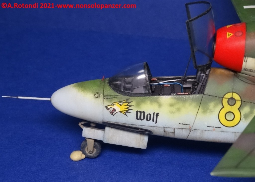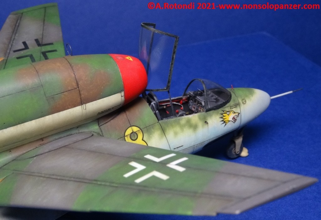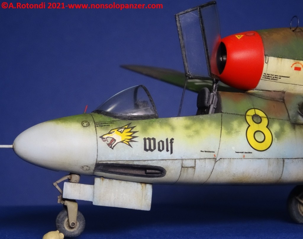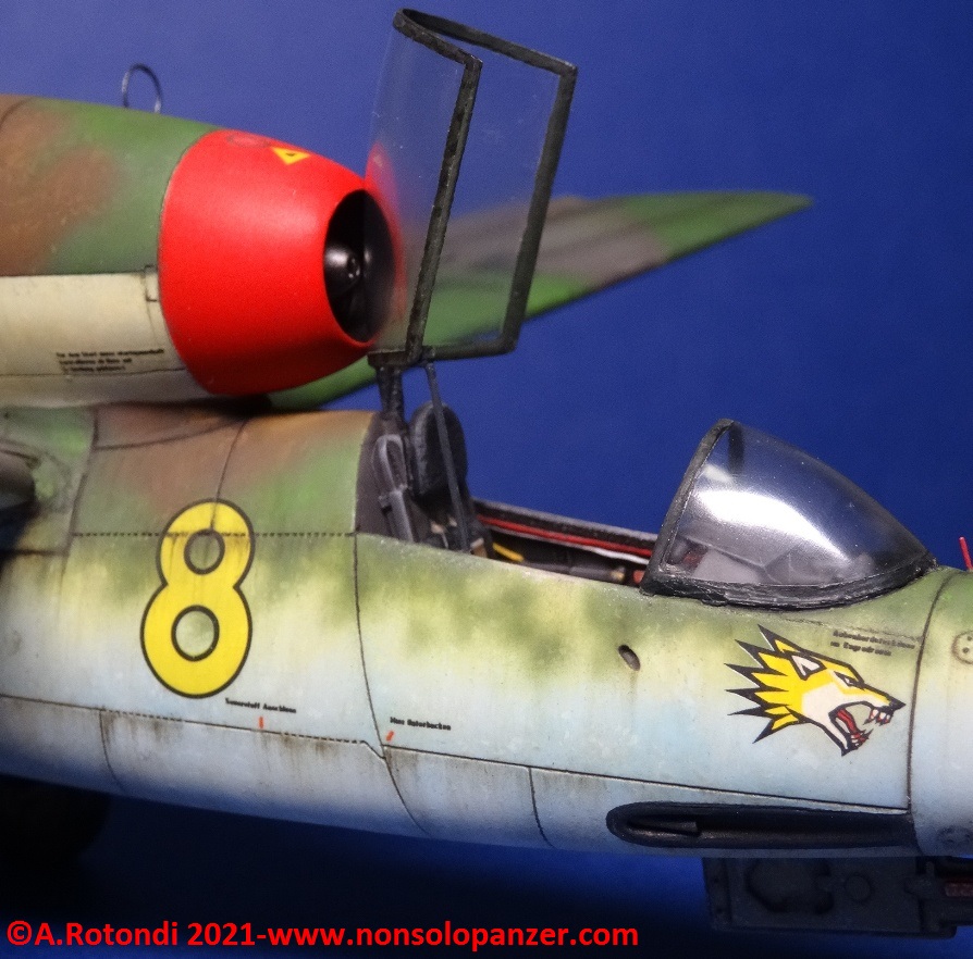 After many articles dedicated to the various stages of construction of my He-162 D, I finally show the fighter completed in all its parts. To my great joy, the matte cover did not give me any problems and made fully visible the weathering done on the model. I am always anxious when it comes time to airbrush the opaque cover because of unpleasant past experiences but, treasuring the previous traumas, everything went well and I am very satisfied with the final result that I show below.