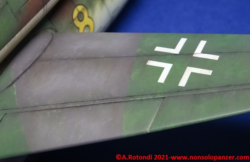 There are some flaws on which, however, I decided not to dogged for the high risk of making things worse. For those who are curious to know what are the imperfections that I found, I list them below knowing that more experienced eyes will find others: you can see the outline of some old decals, the canopy is not perfectly aligned with the cockpit and the door of the right rear landing gear is a little more open than the left. I can’t judge how bad is all this but I think I can say that the coloring and the weathering of this model are very good. I am very satisfied also because it is a result obtained by applying techniques absolutely new to me. It’s always nice when new challenges end with success.