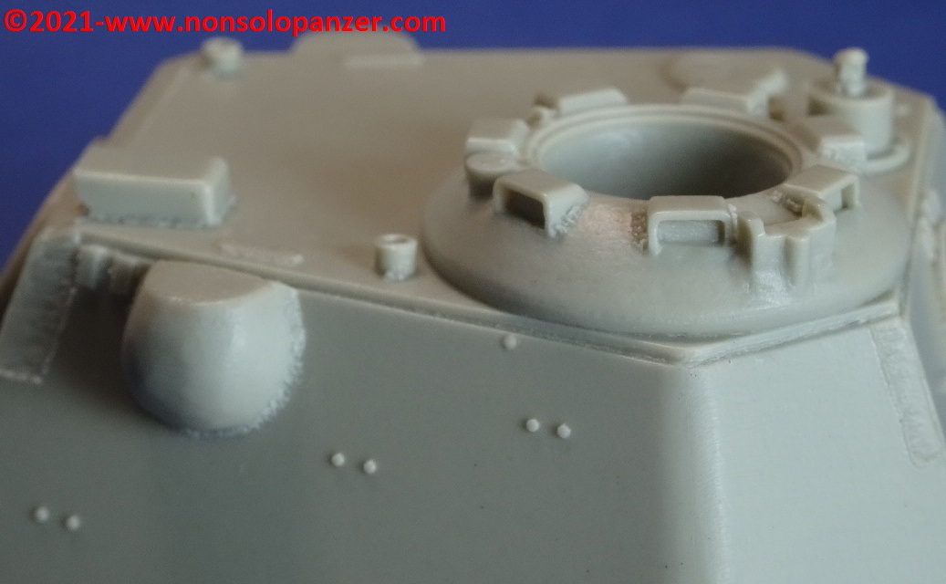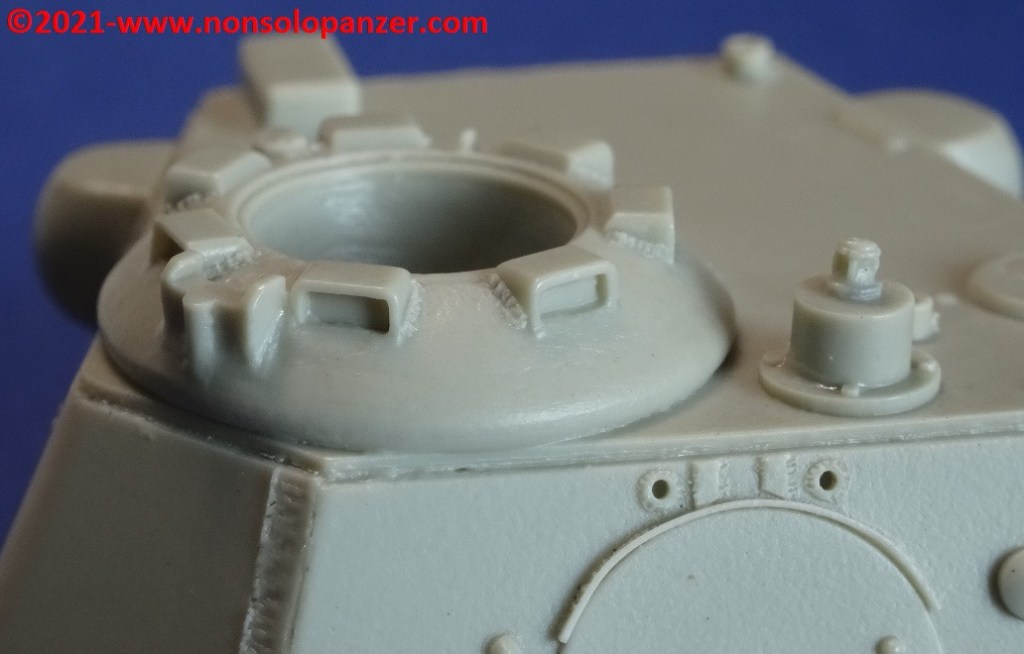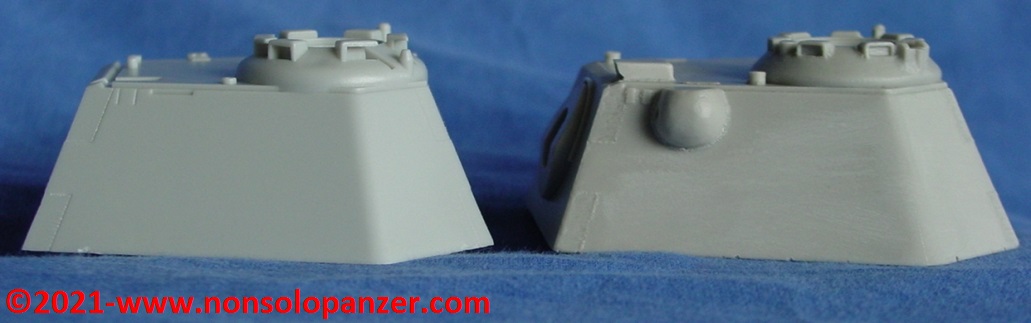 Said that, I would like to propose an examination of the “Schmalturm” by Accurate Armour. Although I do not remember the date of marketing of the set in question, it spontaneously matched with the more or less contemporary kits dedicated to “Panter II” and “Panther” Ausf.F that Dragon Models distributed in the early ’90s. It was well known that these models contained an incorrectly proportioned “Schmalturm” turret. The purchase of the Accurate Armour set appeared, therefore, to be the most effective way to correct this error. In reality, this is not the case. A reliable source of information on Panzers, including their correct measurements, is the “Panzer Tracts” series by Thomas-Jentz and Hillary Doyle; volume 5-4 “Panzerkampwagen Panther II and Panther Ausf.F” offers ample space to the “Schmalturm”. Technical drawings in hand, it is clear that Accurate Armour’s “Schmalturm” is wrong in size and proportions. Not only, Accurate Armour’s “Schmalturm” is identical to the one included in the Dragon Models “Panther II” kit mentioned above. The possibilities are two: Accurate Armour and Dragon Models drew the wrong measurements from the same source, or one copied the other. That said, Accurate Armour’s “Schmalturm” is very well detailed and, for this reason, remains an excellent substitute for its plastic counterpart despite the flaw demonstrated here. Obviously this assessment is made against what was offered by the older Dragon Model kits, I am unable to make comparisons with more recent plastic models.