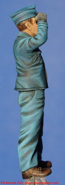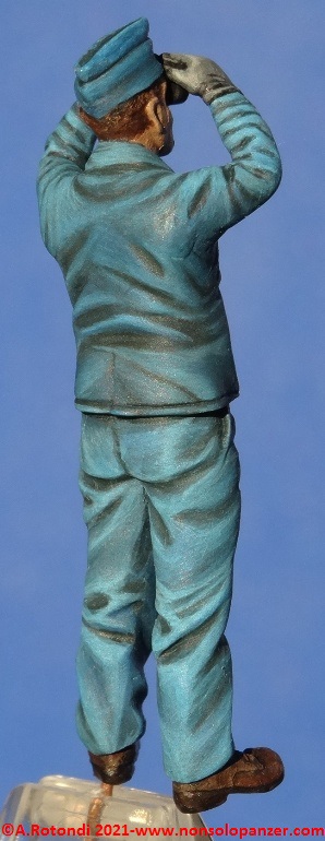 In seguito, mi sono limitato a sovrapporre leggeri veli di colore ben diluito allo scopo di ottenere il graduale passaggio dallo scuro delle pieghe interne al chiaro di quelle più esterne. Benché la tecnica sia relativamente semplice, sono stati necessari più di due mesi per completare la pittura di questi due figurini. Impresa sorprendentemente lunga per due soggetti alti soli tre centimetri e mezzo.