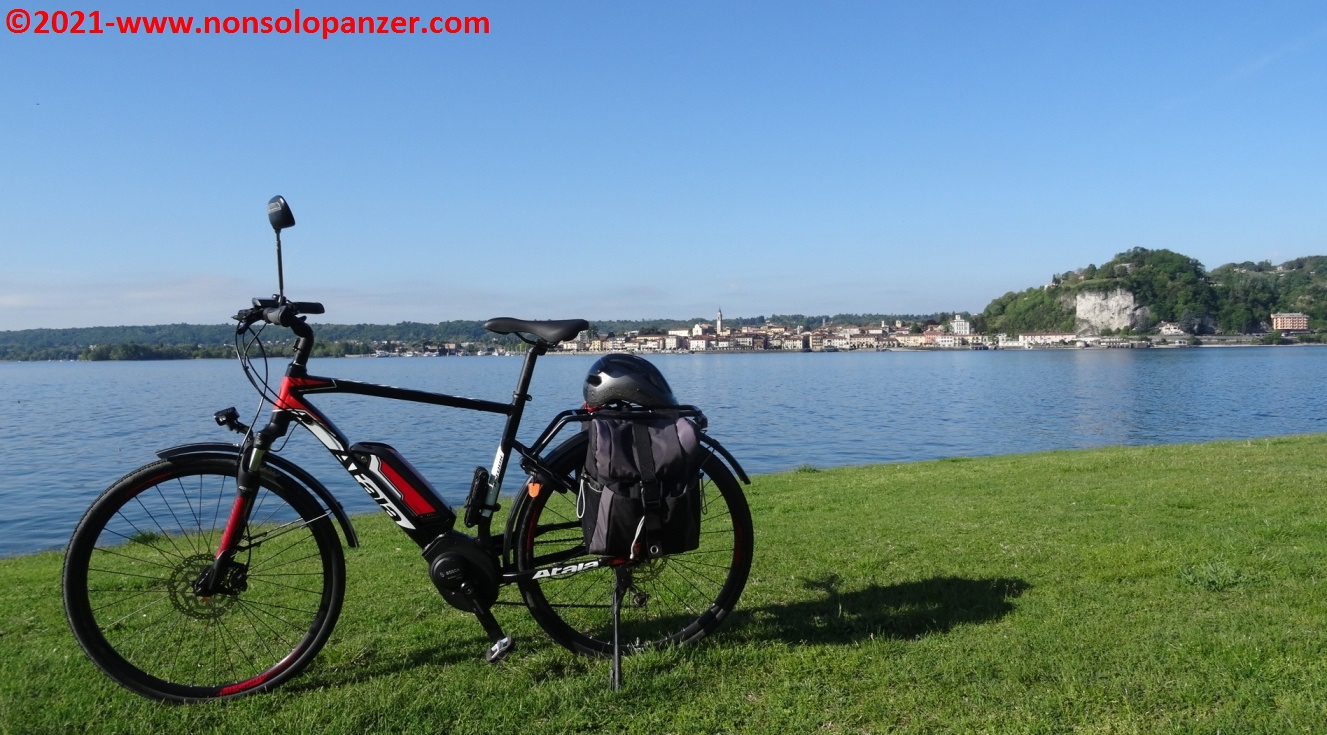 Approfittando di un venerdì di cassa integrazione e di una giornata di bel tempo, ho deciso di muovermi presto da casa con la mia fedele Fiat 500 e, grazie al relativo portabiciclette, ho raggiunto Sesto Calende ed inforcato la bici poco dopo le otto del mattino. Percorsi una decina di chilometri abbondanti lungo la Provinciale 69, di cui solo un paio su ciclabile, ho raggiunto Angera alle nove del mattino dove mi sono concesso una bella colazione presso la pasticceria “Sant’Arialdo”.
