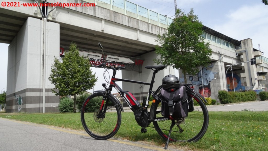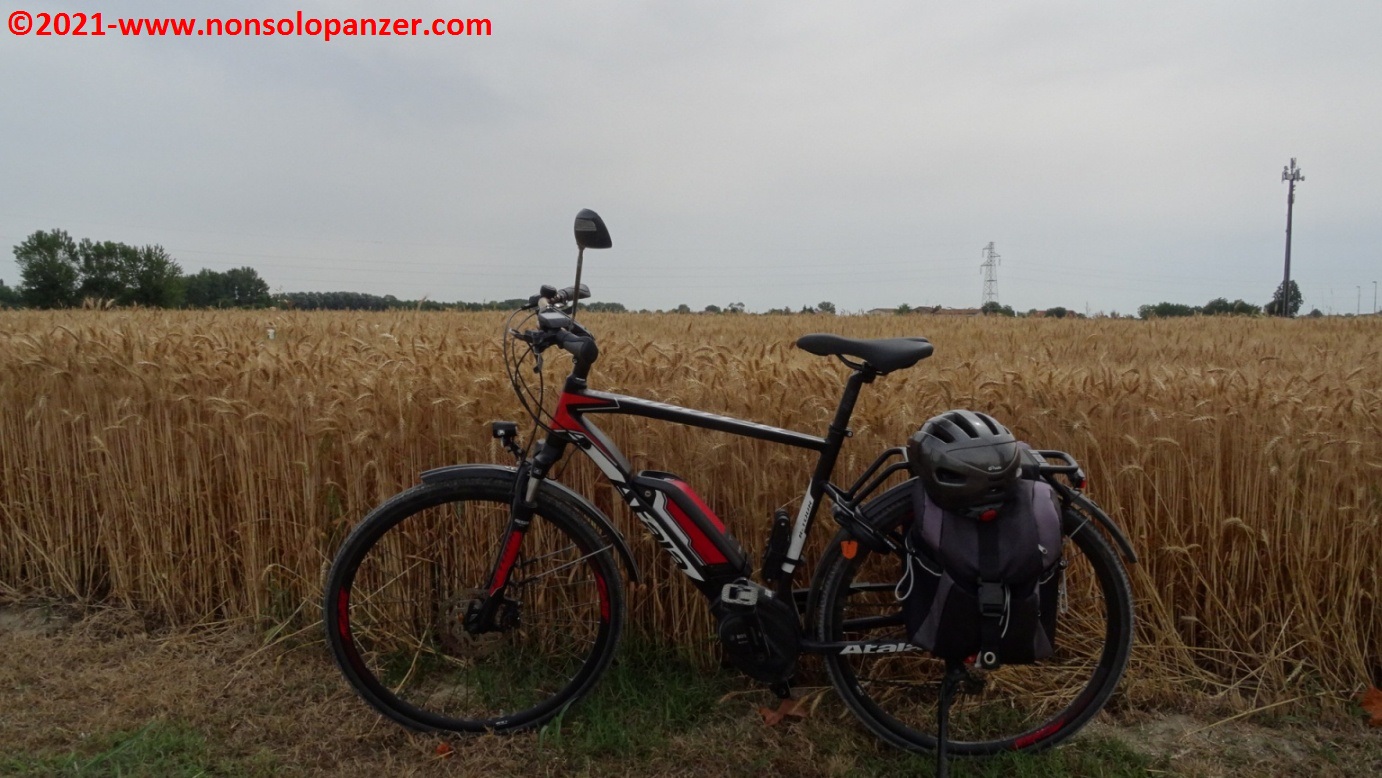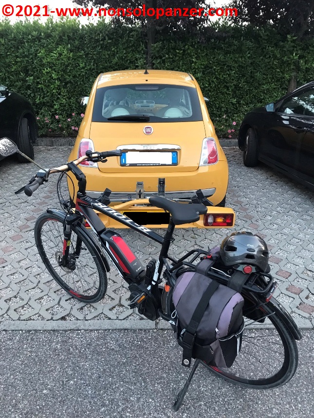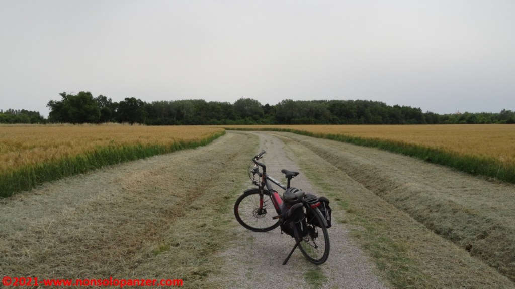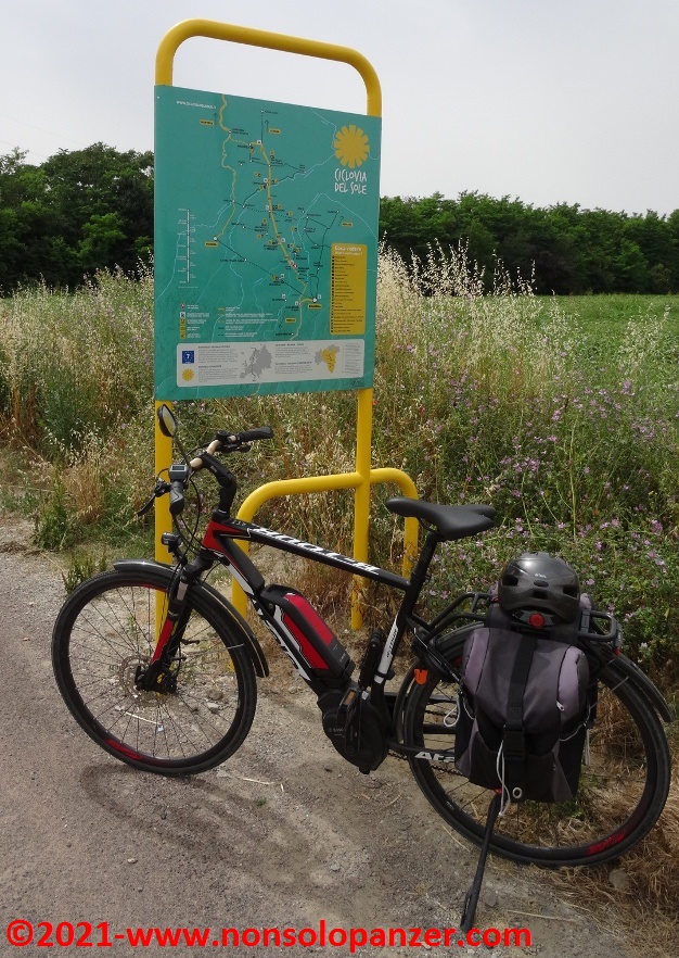 Grazie ad alcuni articoli apparsi sui giornali e sui canali online, sono venuto a sapere della recente inaugurazione della “Ciclovia del Sole” nel tratto da Mirandola ad Osteria Nuova, distante pochi chilometri da Bologna. La “Ciclovia del Sole” è un grande progetto europeo che ha come obiettivo la realizzazione di una pista ciclabile che, tagliando verticalmente l’intera Europa, congiungerà Capo Nord con il Sud Italia. In attesa del suo completamento, non mi sono fatto sfuggire l’occasione di percorrerne il nuovo tratto emiliano. Partito il venerdì 18 giugno con la mia fedele Fiat 500 equipaggiata di portabici personalizzato, ho raggiunto Mirandola in serata ed ho inforcato la bicicletta la mattina successiva, sabato 19 giugno.