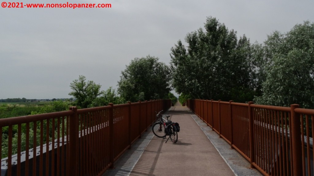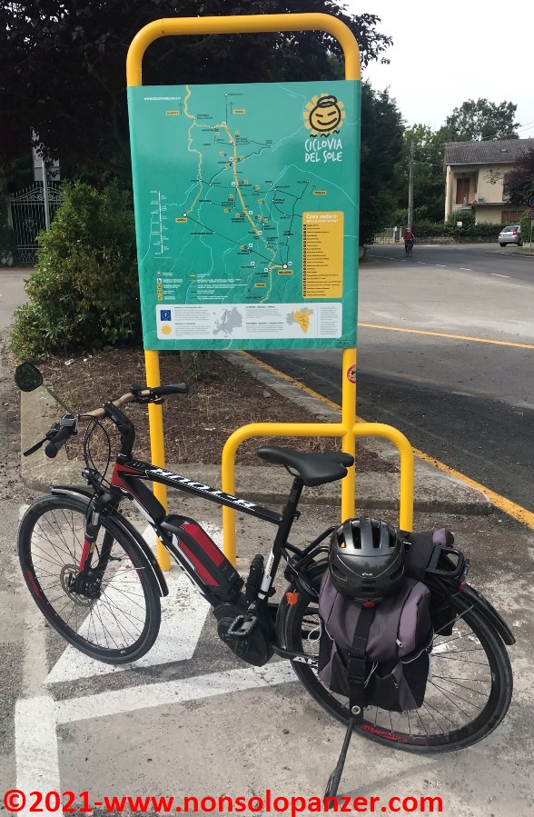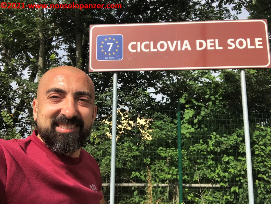 Thanks to some articles in the newspapers and on online channels, I learned of the recent inauguration of the “Ciclovia del Sole” in the section from Mirandola to Osteria Nuova, a few kilometres from Bologna. The “Ciclovia del Sole” is a major European project which aims to create a cycle path which will link the North Cape with the south of Italy. While waiting for its completion, I did not miss the opportunity to ride the new section in Emilia. On Friday 18 June, with my Fiat 500 equipped with a customised bike rack, I reached Mirandola in the evening and, on Saturday 19 June, I ride my bike.