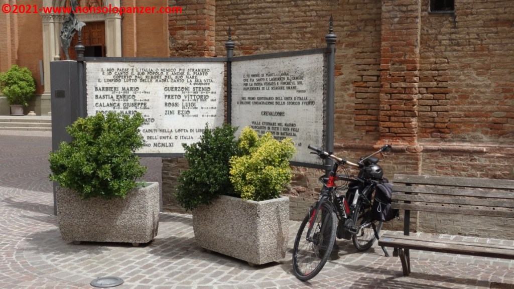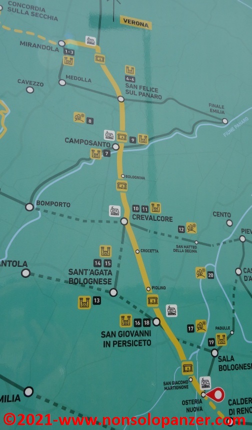 Having reached Osteria Nuova, the southernmost point of this section of the ‘Ciclovia del Sole’, I returned to Mirandola, covering a total of 112 kilometres and with an excellent aperitif in the central square of Mirandola.