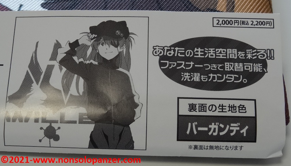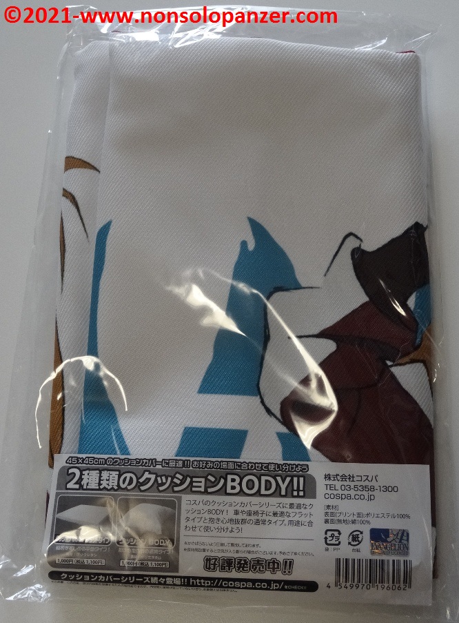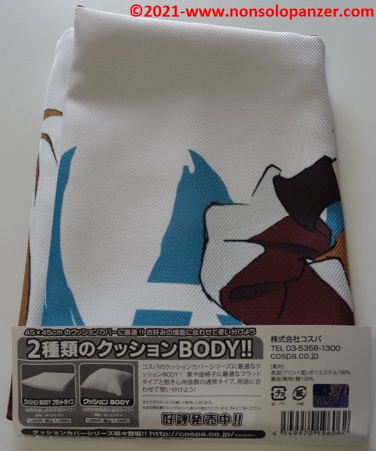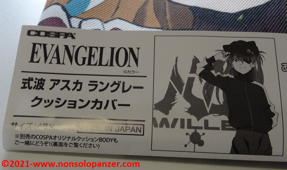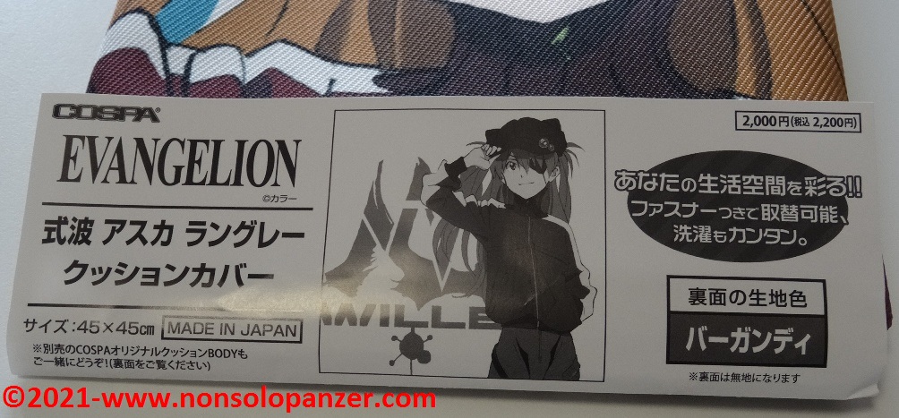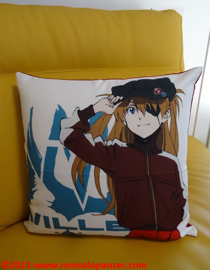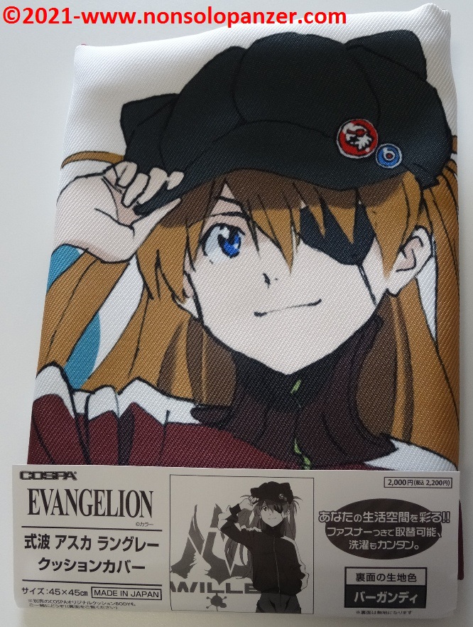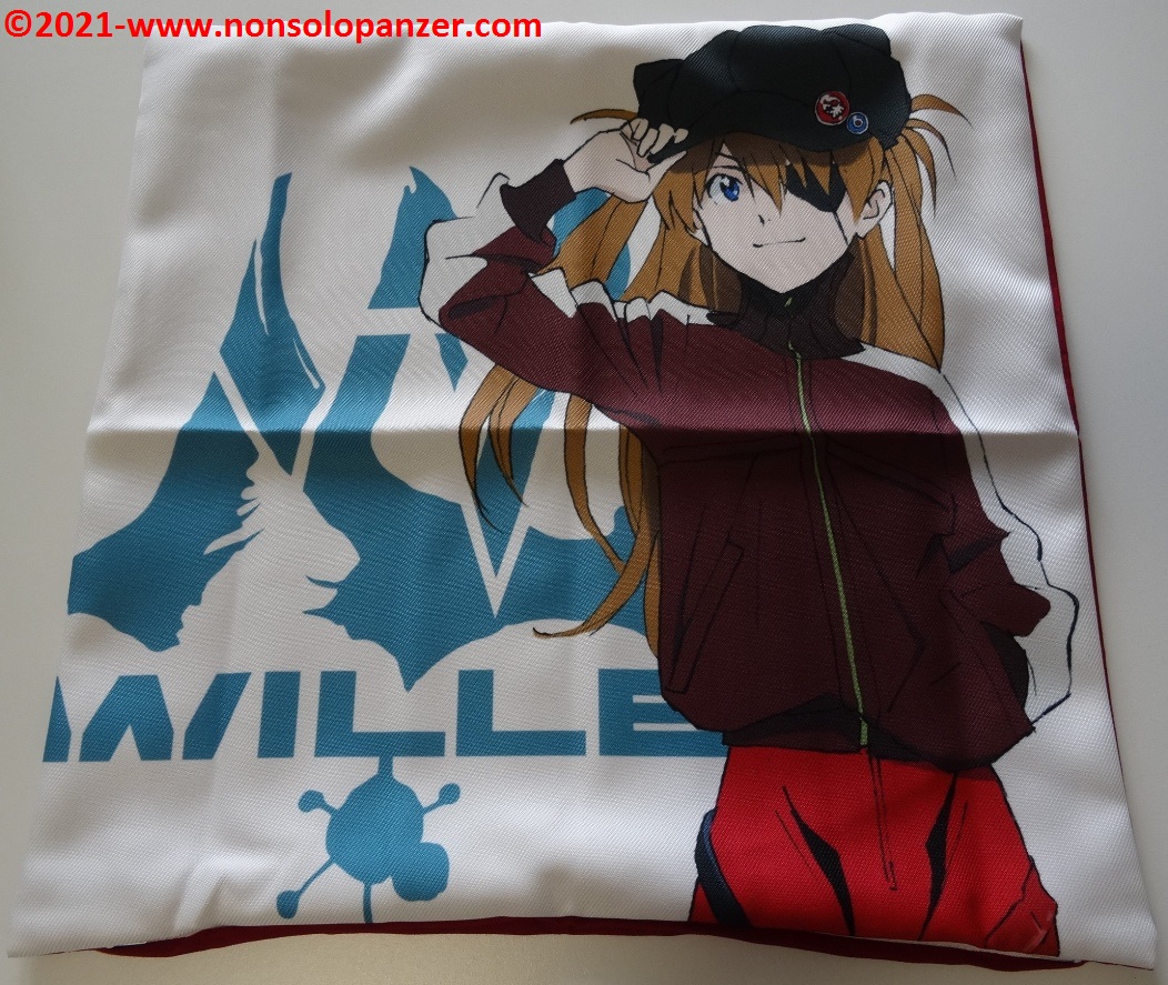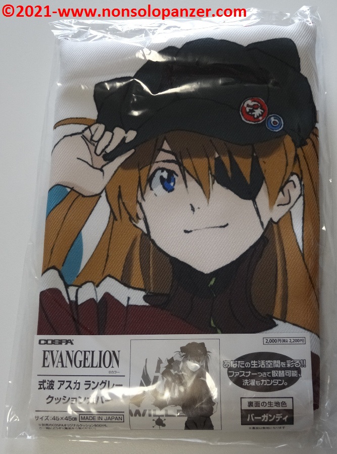 Ever faithful to my passion for “Neon Genesis Evangelion” animated series, I am constantly on the hunt for merchandise that can demonstrate to whole world my unconditional devotion to Shikinami Asuka Langley, my favourite character from this famous Anime. I have already purchased countless products dedicated to the pilot of EVA 02. To prove this claim, suffice it to mention two T-shirts bought at the Evangelion Store Tokyo-01 during the 2019 Japan trip, the “What Kind of Idiot Are You?“ T-shirt and PASMO holder both produced by Cospa, as well as the “Shikinami Asuka Langley Figuarts Mini” mini-fugure by Tamashii Nations/Bandai. Given these premises, I certainly couldn’t miss the “Shikinami Asuka Langley Cushion Cover” which is the subject of this article.