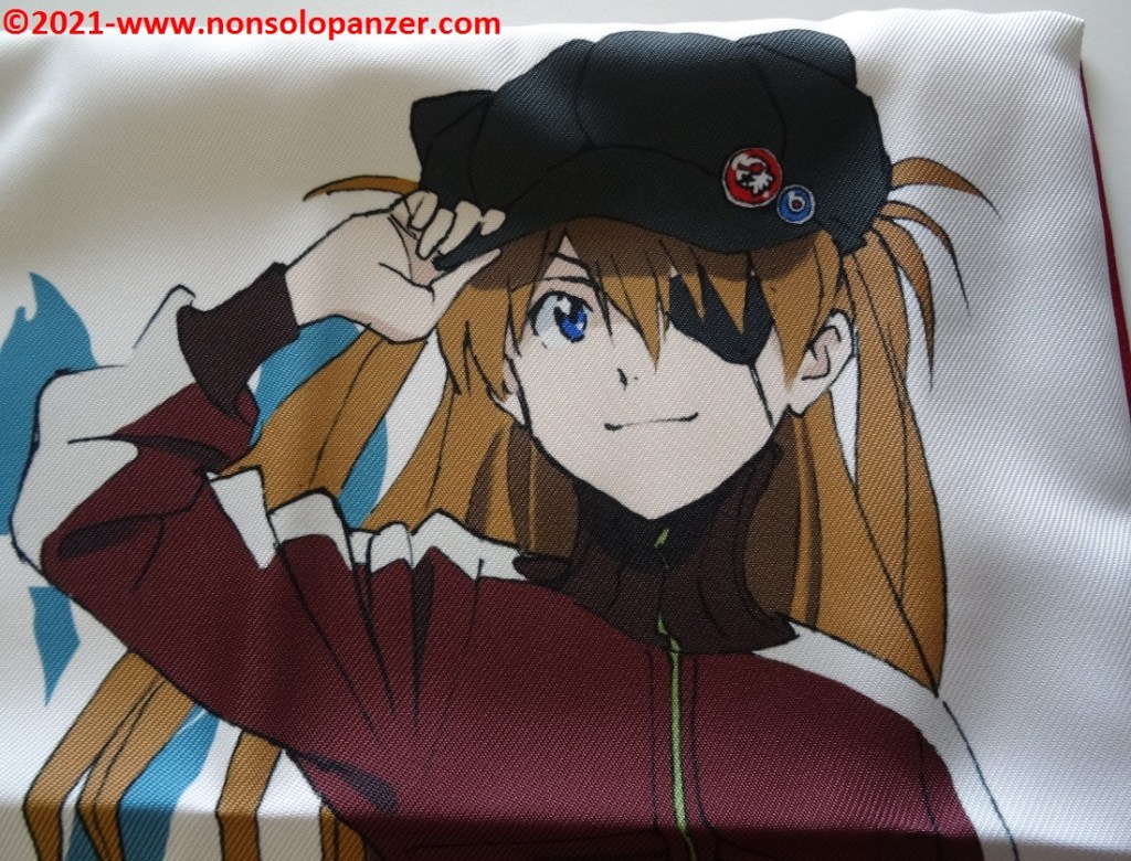 I have already had the opportunity on several occasions to praise the quality of Cospa products but rarely this Japanese company has marketed items like the pillow in question. If this reason was not enough to justify my prompt purchase on the online shopping platform ‘Hobby Link Japan‘, I would like to point out that the image of Asuka is beautifully reproduced. Every detail of the original design is respected, without flaws or smudges of any kind. Moreover, the character is represented with one of the most iconic outfits shown in the movies, a detail that increases the value of the illustration.