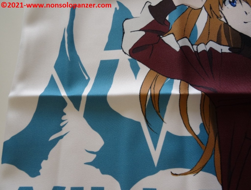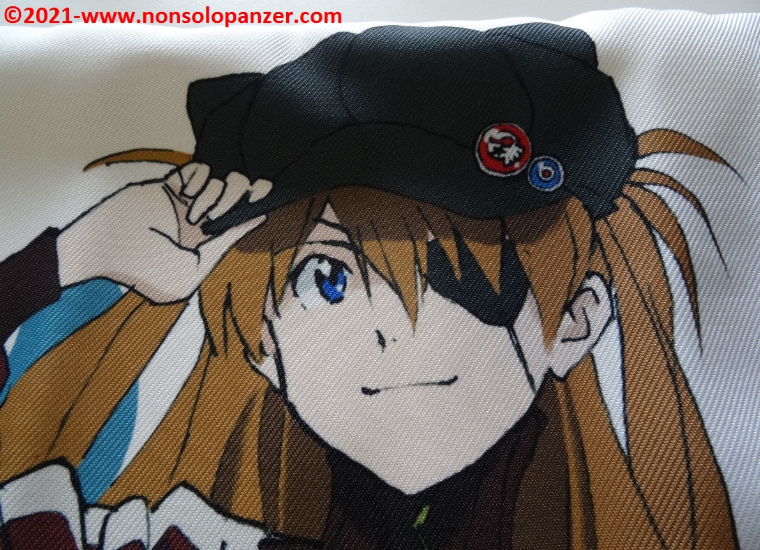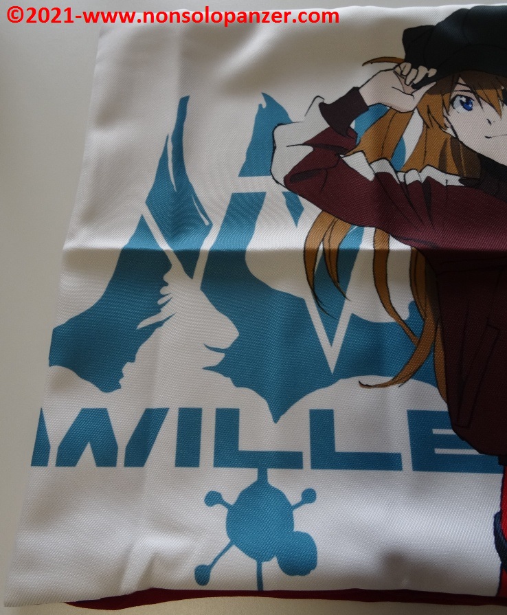 Ho già avuto modo in diverse occasioni di elogiare la qualità dei prodotti Cospa ma raramente questa società nipponica ha commercializzato articoli come il cuscino in oggetto. Se non bastasse tale motivo a giustificare il mio pronto acquisto sulla piattaforma di shopping on line “Hobby Link Japan”, segnalo che l’immagine di Asuka è splendidamente riprodotta sulla stoffa. Ogni dettaglio del disegno originale è rispettato, senza difetti o sbavature di alcun tipo. Il personaggio, inoltre, è rappresentato con un outfit fra i più iconici mostrati nei film cinematografici, dettaglio che aumenta non poco il pregio dell’illustrazione riprodotta.