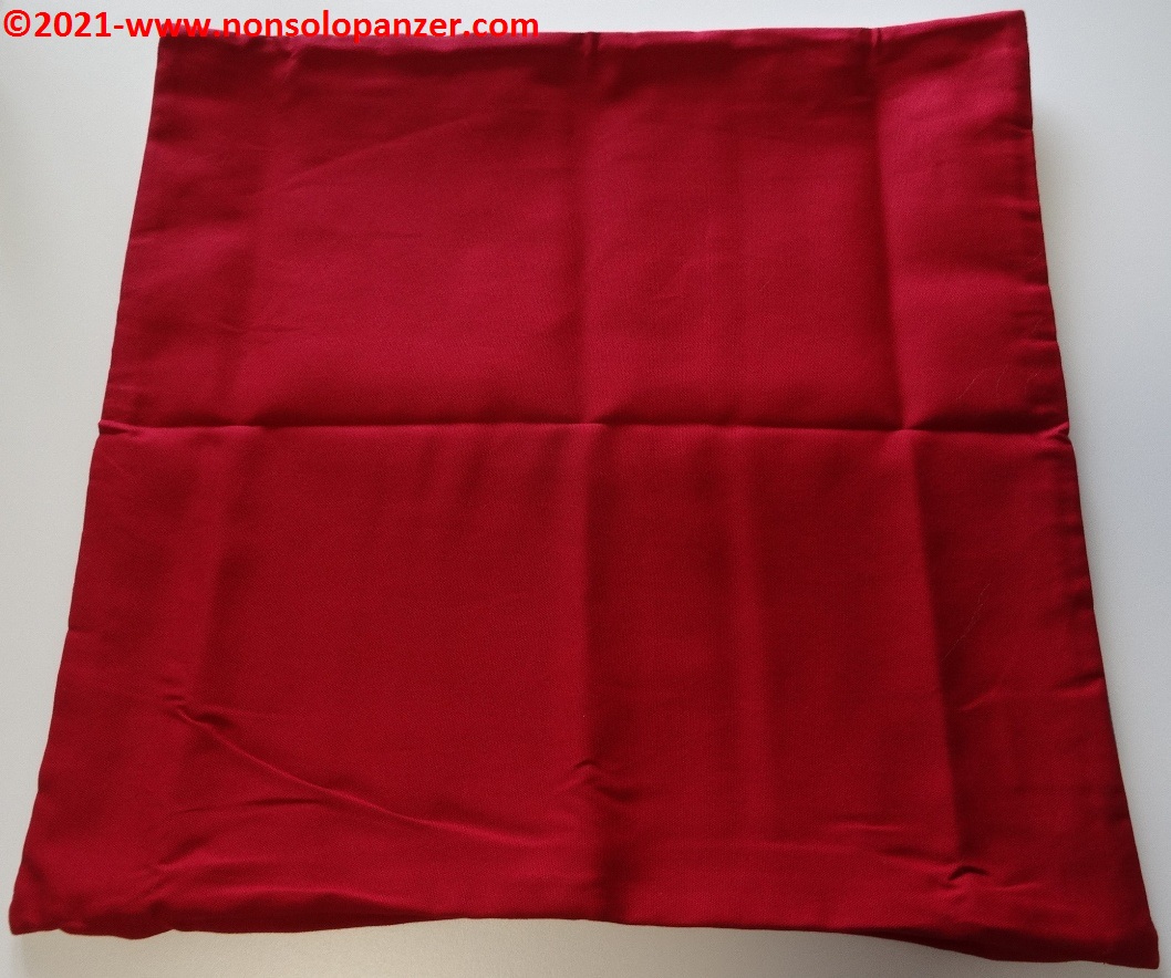 In the package of the “Shikinami Asuka Langley Cushion Cover” there is only the cover. The padding has to be purchased separately, but this is not an insurmountable difficulty. Fortunately, the measurements of the cover are a standard 45×45 centimetres. It is therefore sufficient to go to a household goods shop to find suitable padding and obtain the much-needed cushion.