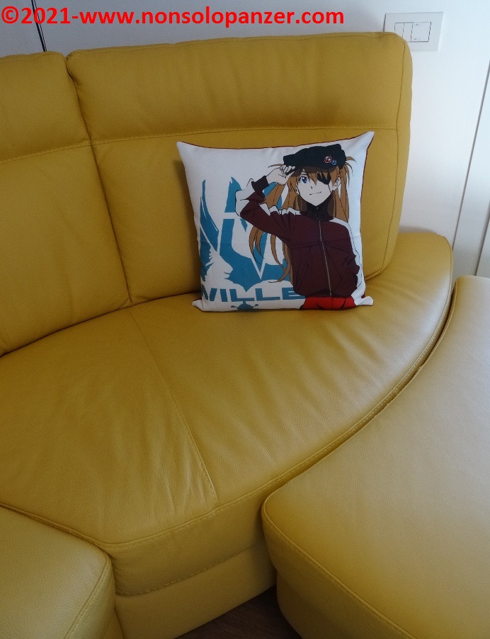 Cuscino che è andato subito ad impreziosire il divano posto nell’Anime Corner del mio salotto.