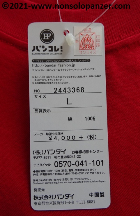 Again produced by Cospa like many of the gadgets in my possession, the Principality of Zeon 2nd Terrestrial Mobile Division California Base T-Shirt is of excellent quality as demonstrated by the precision of the cut and stitching and, crucially, the detail of the print reproduced. Needless to add that the reference to the 2nd Attack Division and to the success achieved in California adds, in my eyes, a further element of merit to an already very nice T-shirt.