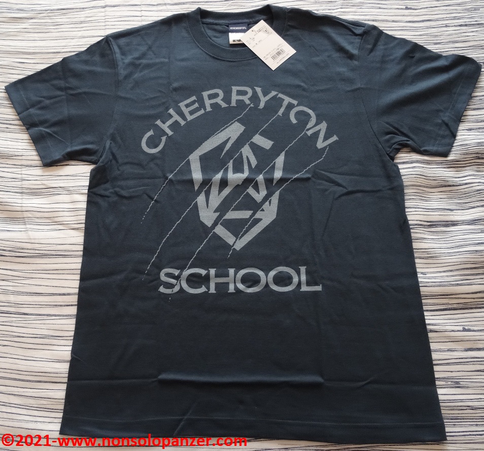 I personaggi principali di “Beastars” sono studenti della “Cherryton School”, fiore all’occhiello della città ove è ambientata la storia ed ultimo istituto scolastico ove erbivori e carnivori coesistono in classi miste. A tale scuola è dedicata la T-Shirt in oggetto su cui è rappresentato il simbolo della stessa. Con una grafica forse non molto riuscita, l’emblema appare strappato dagli inconfondibili artigli di un predatore. Lo scopo è evidente, simboleggiare il tumulto di paure, istinti e pregiudizi che serpeggiano e condizionano tutta la società rappresentata in “Beastars”.