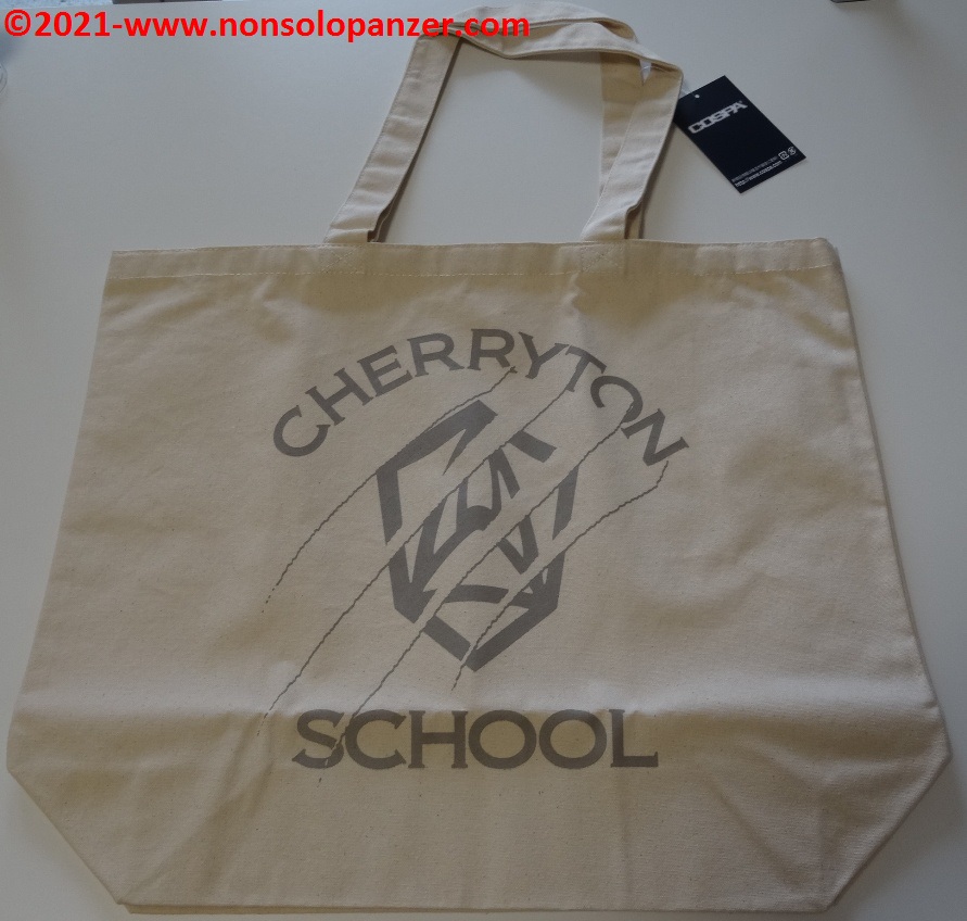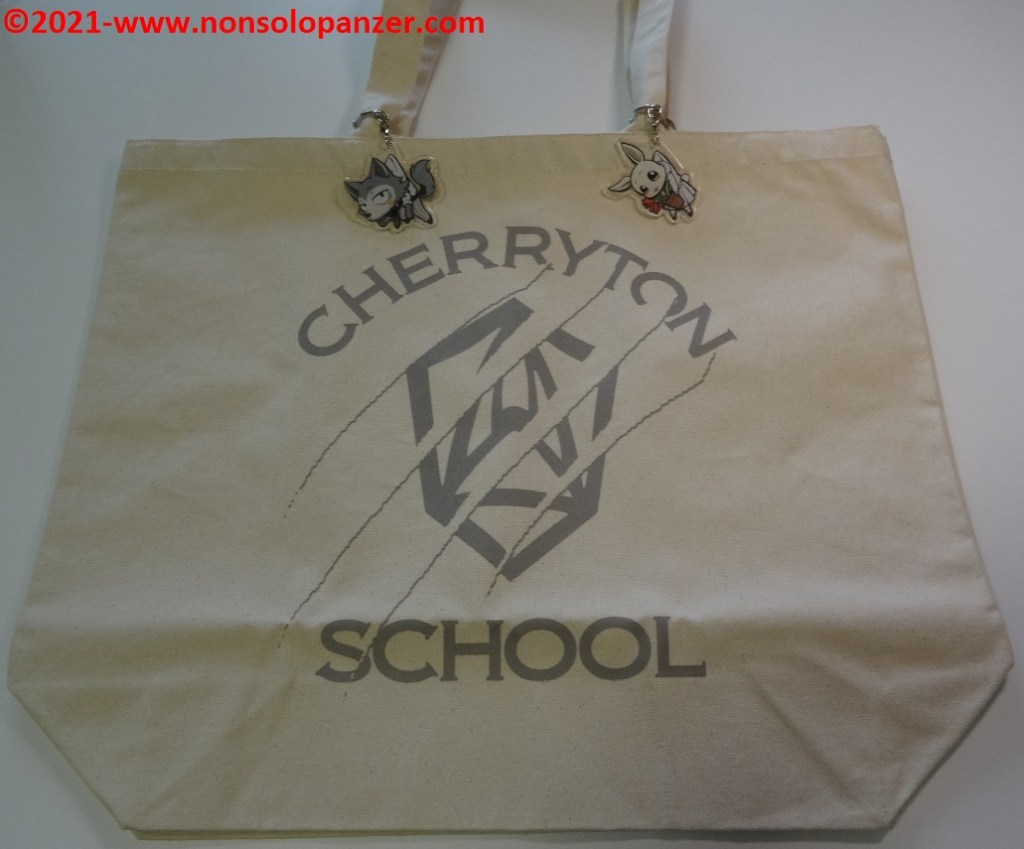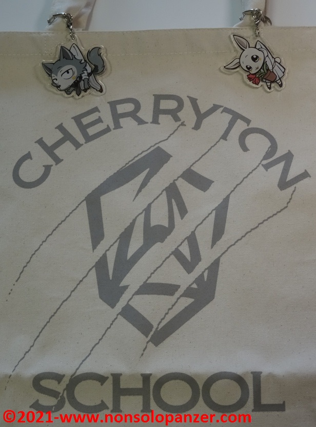 I personaggi principali di “Beastars” sono studenti della “Cherryton School”, fiore all’occhiello della città ove è ambientata la storia ed ultimo istituto scolastico ove erbivori e carnivori coesistono in classi miste. A tale scuola è dedicata la Shopping Bag in oggetto su cui è rappresentato il simbolo della stessa. Con una grafica forse non molto riuscita, l’emblema appare strappato dagli inconfondibili artigli di un predatore. Lo scopo è evidente, simboleggiare il tumulto di paure, istinti e pregiudizi che serpeggiano e condizionano tutta la società rappresentata in “Beastars”.