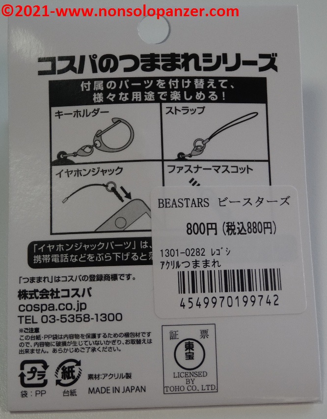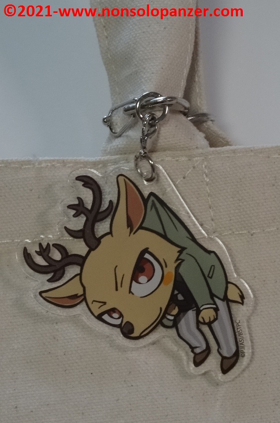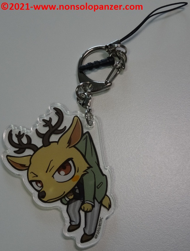 Just to compensate this last aspect, always through the excellent online sale service offered by Hobby Link Japan, I bought three nice Tsumamare, images printed on acrylic support that can be used as key rings, mobile phone straps or simple mascots to be fixed to bags and backpacks thanks to the different hooks available. The Tsumamare in question obviously depict characters from “Beastars“: Legoshi, the grey wolf protagonist, the bunny Haru with whom he is in love and the red deer Louis, the senpai of both. The illustrations reproduced are a nice super-deformed version of the characters with some peculiar features. For example, Legoshi wears the school uniform of the “Cherryton School” and Haru is holding a vase of flowers because of his passion for botany. The likability of these Tsumamare is increased by the fact that the characters really seem to be hanging from the hooks included in the packaging.