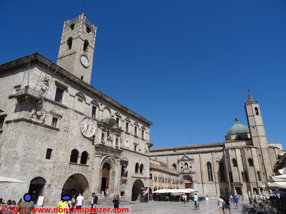 L’anno scorso ho trascorso le mie vacanze estive nelle Marche. Grazie alla mia fedele Fiat 500 ed al suo specialissimo portabici, ho potuto scoprire sulle due ruote aree bellissime fra Urbino ed il Conero, come raccontato nei numerosi articoli che ho scritto proprio su questo argomento. Entusiasta dell’esperienza fatta, ho deciso di tornare nelle Marche anche questo agosto per trascorrervi due settimane, da venerdì 6 a venerdì 20 agosto 2021. Senza cambiare nella sostanza la formula “Auto + Bici” già rodata in tante occasioni precedenti, ho scelto come meta principale: Ascoli Piceno. Grazie alla sua posizione intermedia fra il mare e la montagna, ho usato la città come base per esplorare la costa ed i vicini Monti Sibillini. Ho così conosciuto la zona meridionale delle Marche, sul confine con l’Abruzzo, a differenza dell’anno scorso dove ero rimasto a nord, sul confine con l’Emila Romagna. Negli articoli che seguiranno, mi divertirò a tornare con la memoria ai percorsi affrontati con la mia Atala a pedalata assistita mentre, in questa sede, mi diletterò ad elogiare alcune città sperando di incoraggiarvi a visitarle.
