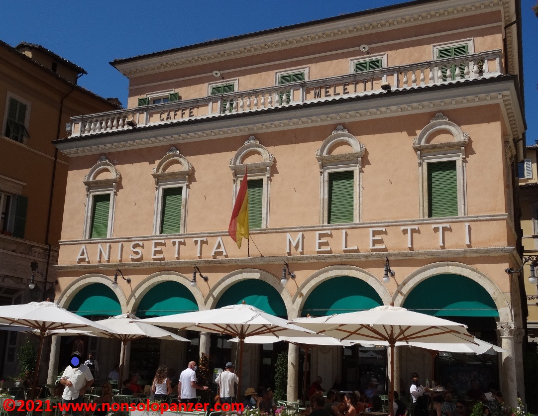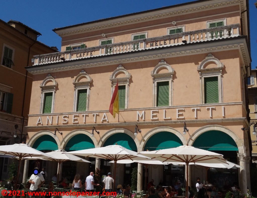 Una menzione d’onore devo riconoscerla al “Caffè Meletti”, un elegante bar in stile liberty di inizio secolo scorso. Piccolo gioiello incastonato in Piazza del Popolo, è una meta da non perdere non solo per gli interni datati 1907 ma anche per i tavoli esterni da cui è possibile ammirare la piazza degustando un aperitivo preparato con l’Anisetta, un noto liquore a base di anice inventato proprio dal fondatore del locale.