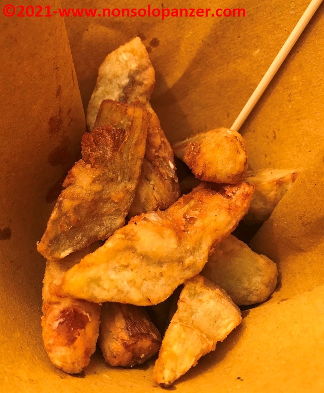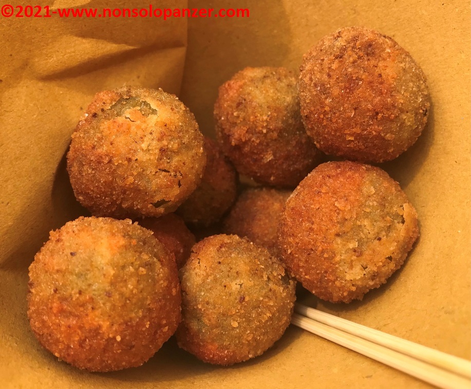 Ascoli Piceno è, come noto, patria della olive ascolane che possono essere gustate in ogni dove. Per chi fosse ghiotto come me di questa specialità gastronomica, segnalo “180°”, un piccolo locale affacciato su Piazza del Popolo a cui assegno la mia personale medaglia d’oro nella difficile competizione con la ricca offerta concorrente. Le olive ascolane di “180°” sono particolarmente gustose poiché conservano il proprio succo nonostante la cottura. Immagino sia dovuto tanto alla qualità delle olive quanto al tipo di frittura a cui sono sottoposte. In ogni caso non ho trovato eguali in Ascoli Piceno. Non da meno sono le altre fritture offerte (carciofi in primis). Altra chicca da non dimenticare è il panino ascolano, preparato con il ripieno delle olive. Consiglio vivamente anche “Yoghi” in Piazza Arringo per una colazione speciale a base di cupcake e la gelateria “Gioelia” a poco distanza.