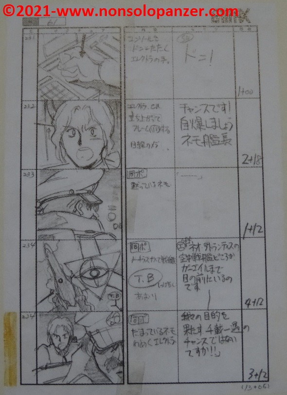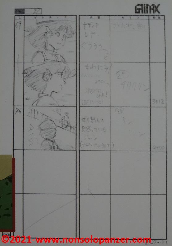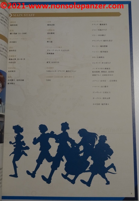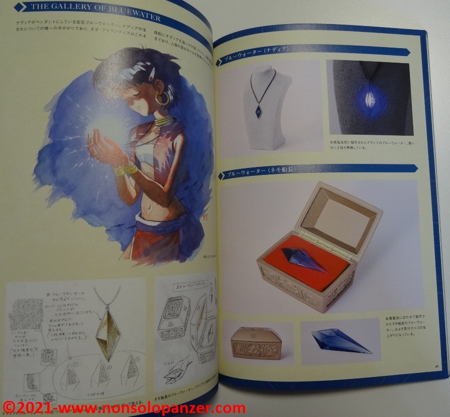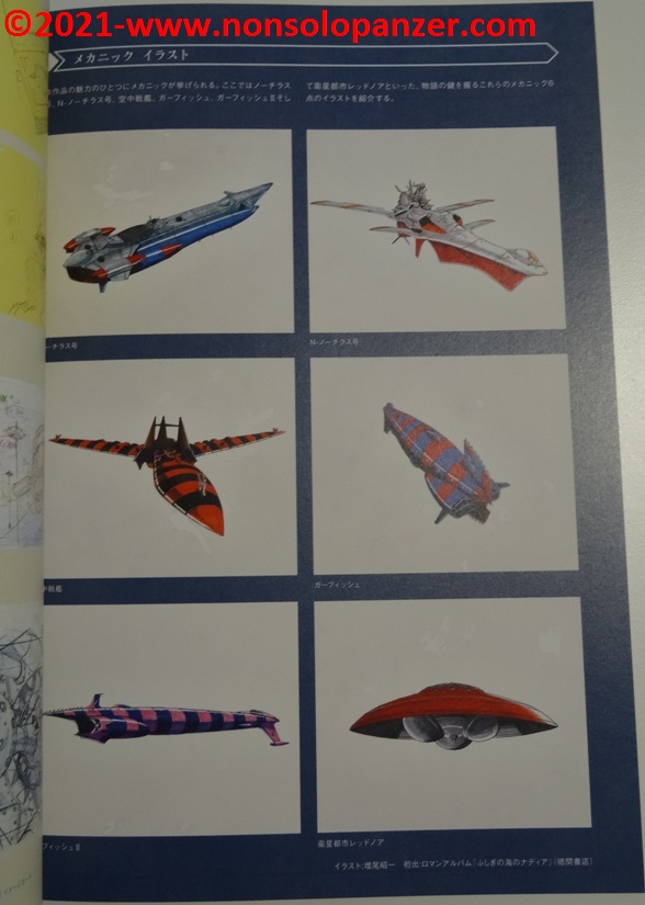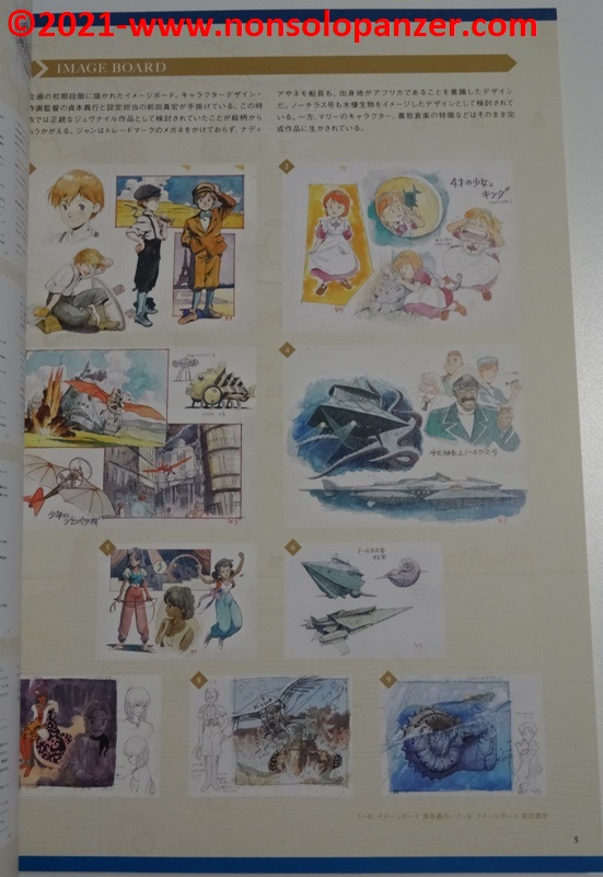 Benchè colmo di rammarico per non aver potuto visitare la mostra, ho in parte supplito a questa mancanza procurandomi il “Nadia: The Secret of Blue Water” 30th Anniversary Exhibition Catalog che ha il pregio di offrire un’interessantissima carrellata su quanto esposto nella mostra. Si tratta per lo più di materiale di grande fascino perché strettamente legato alla produzione della serie e frutto dell’estro creativo degli artisti coinvolti.