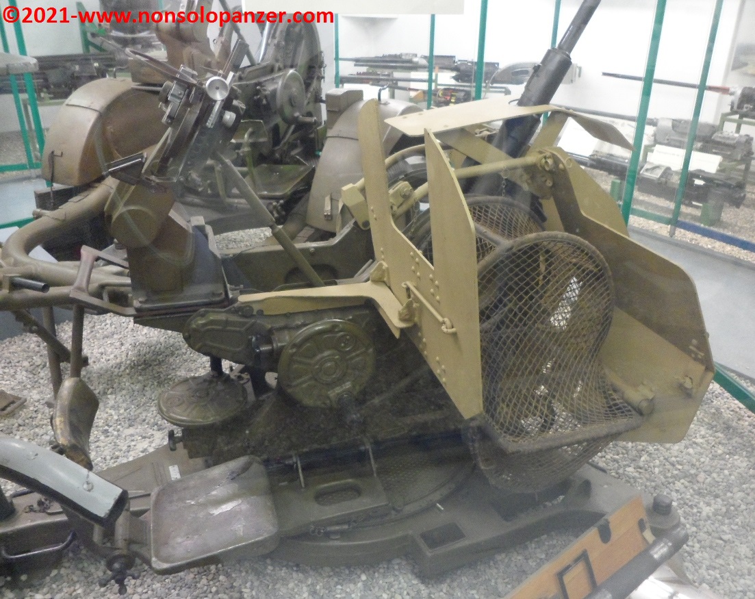 The 2cm Flak-38 of Defense Technology Museum in Koblenz is a fine exemplar, which differs from those more commonly seen in other museums or in private property, as equipped with a shield to protect the servants from enemy fire. Being protected by glass, I could not take pictures of every detail of the weapon but I hope that the pictures below are of interest to modellers and enthusiasts.